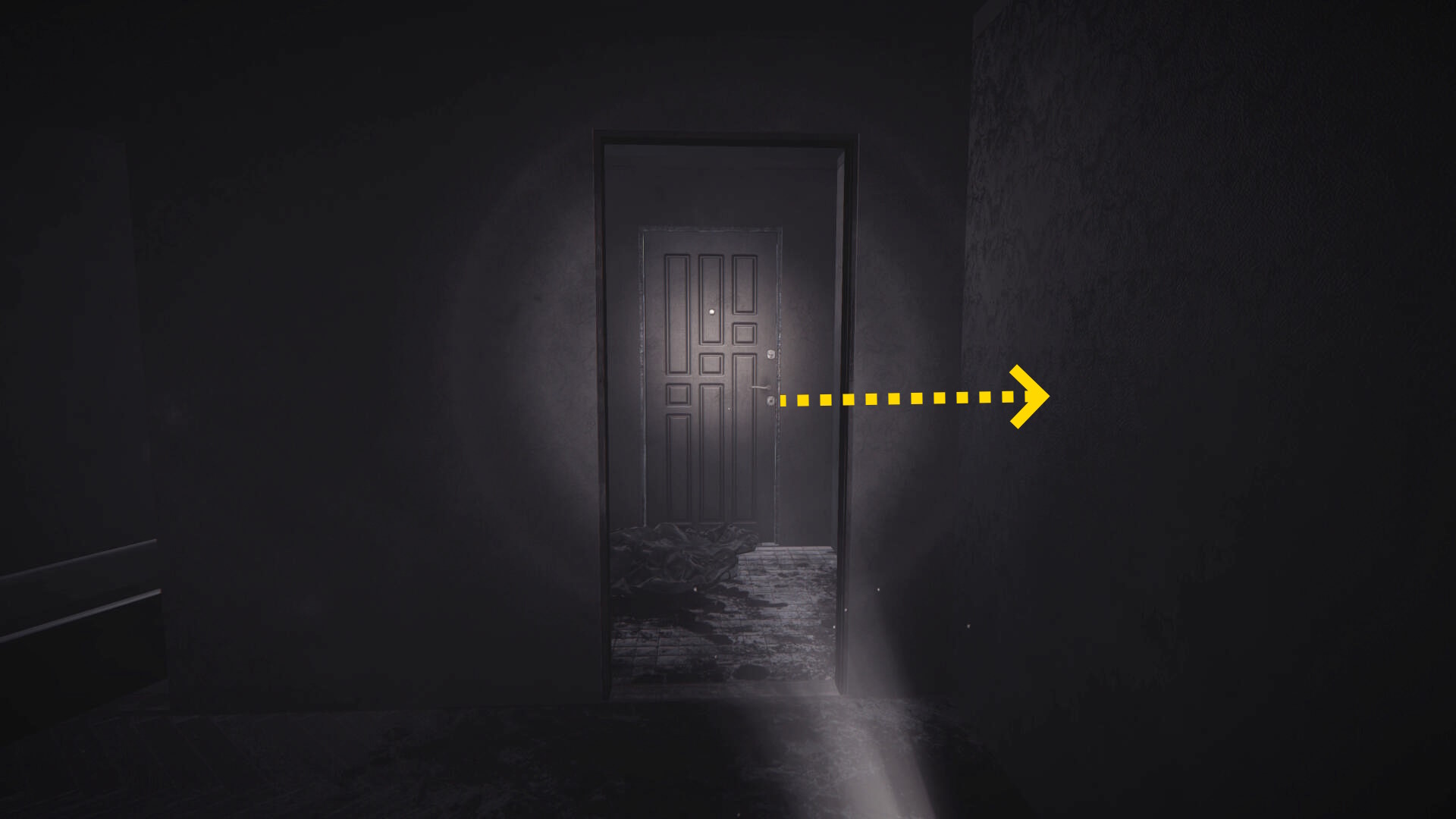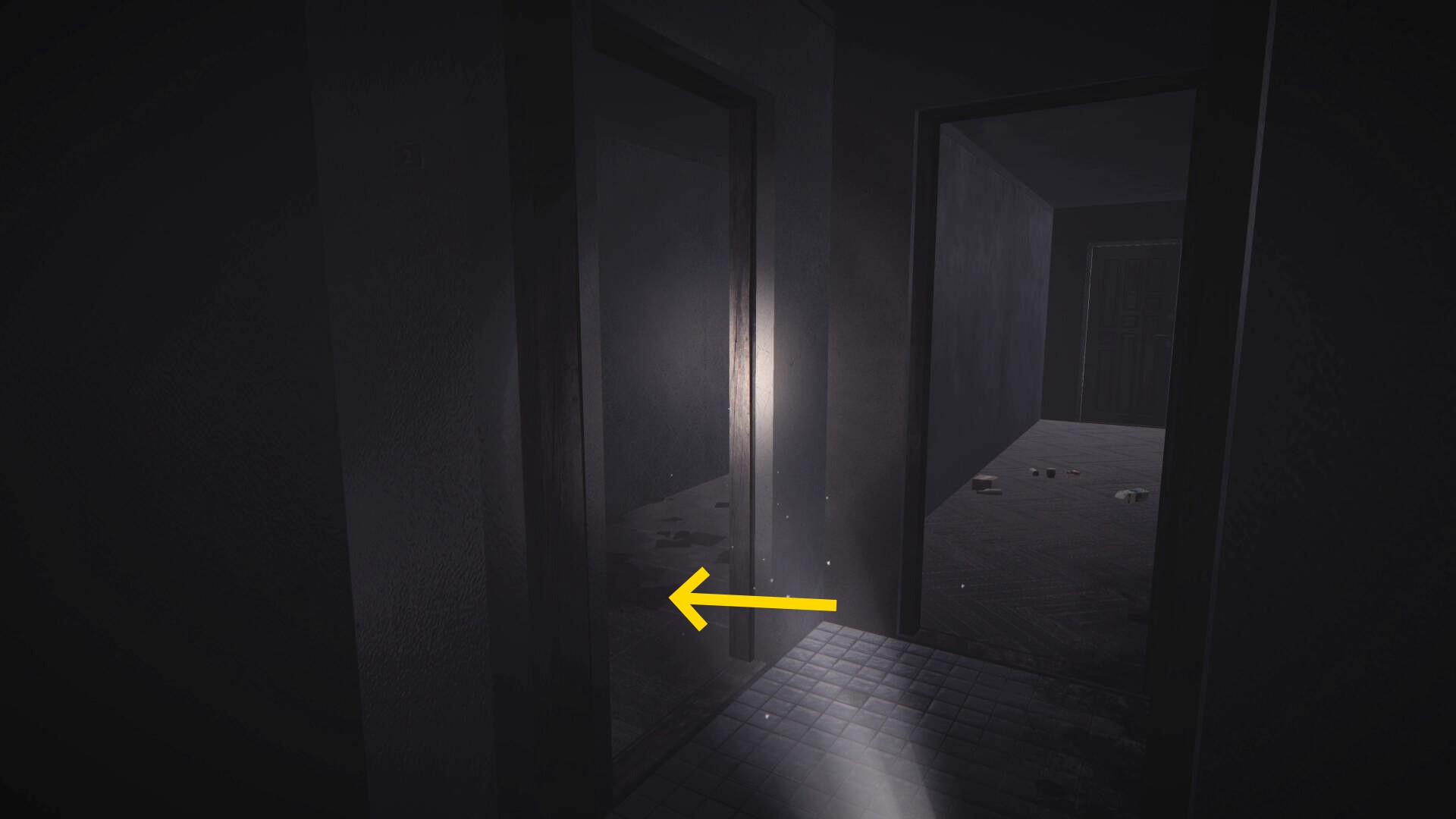- 正面奥に見えるドアのほうへ進む