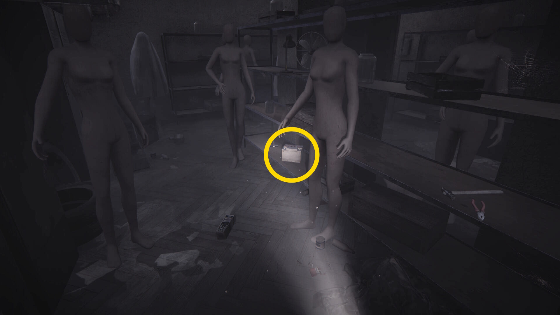 - 来た道を引き返し、マネキンがあった地下室に戻る
