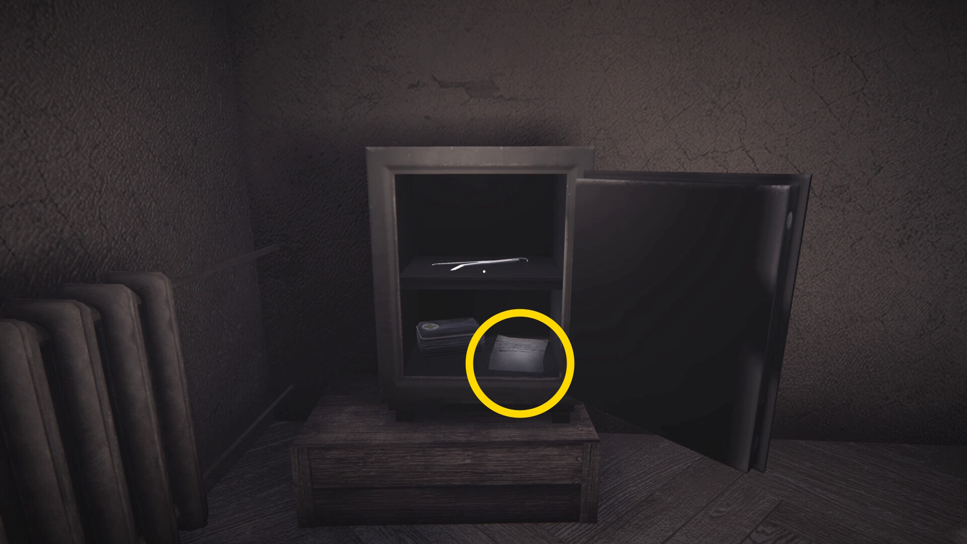 - 実績解除後、金庫の中の メモ を読む(モラルポイント:15/17)