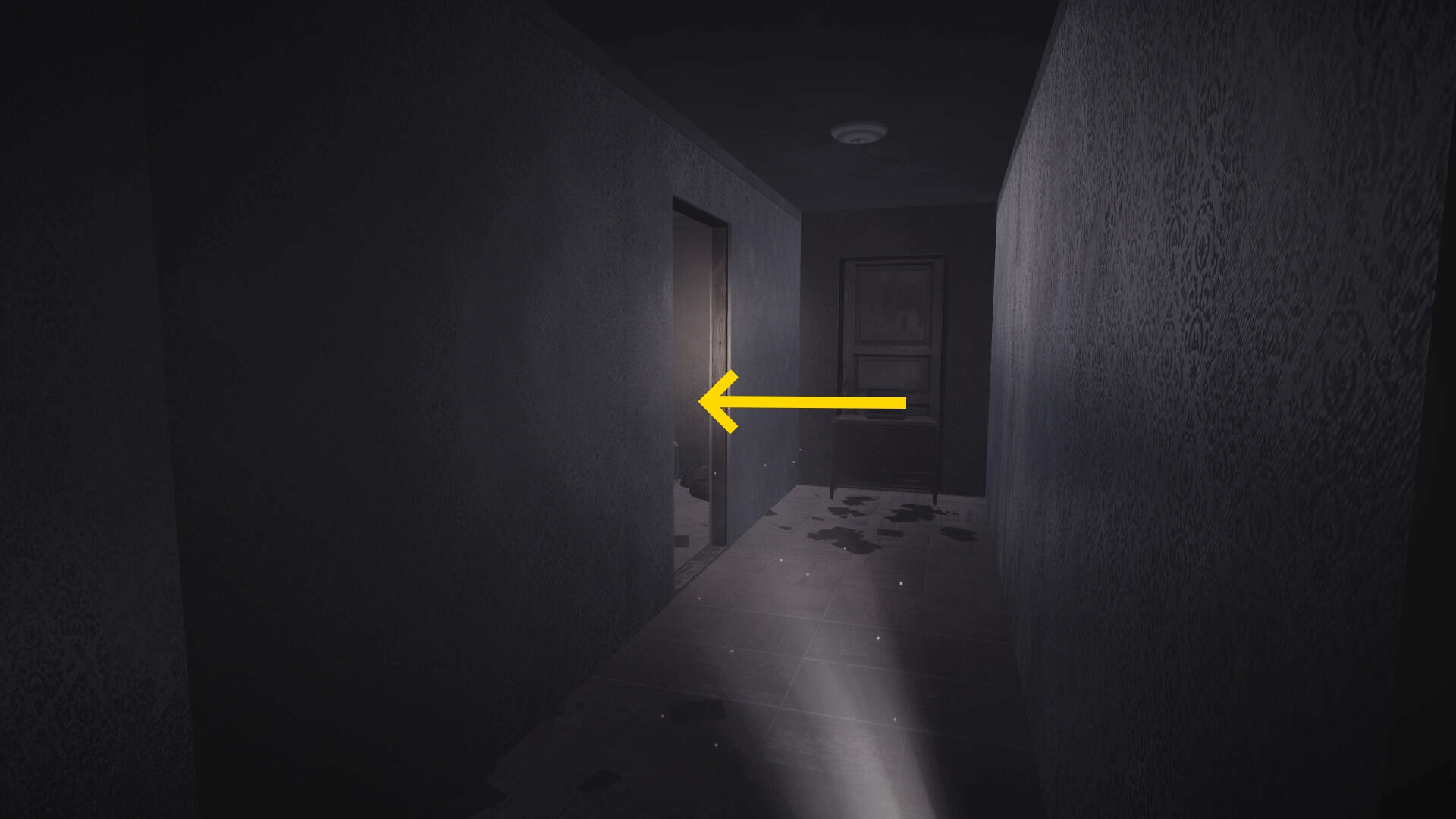 - 遺体がある部屋を出て、右を向く