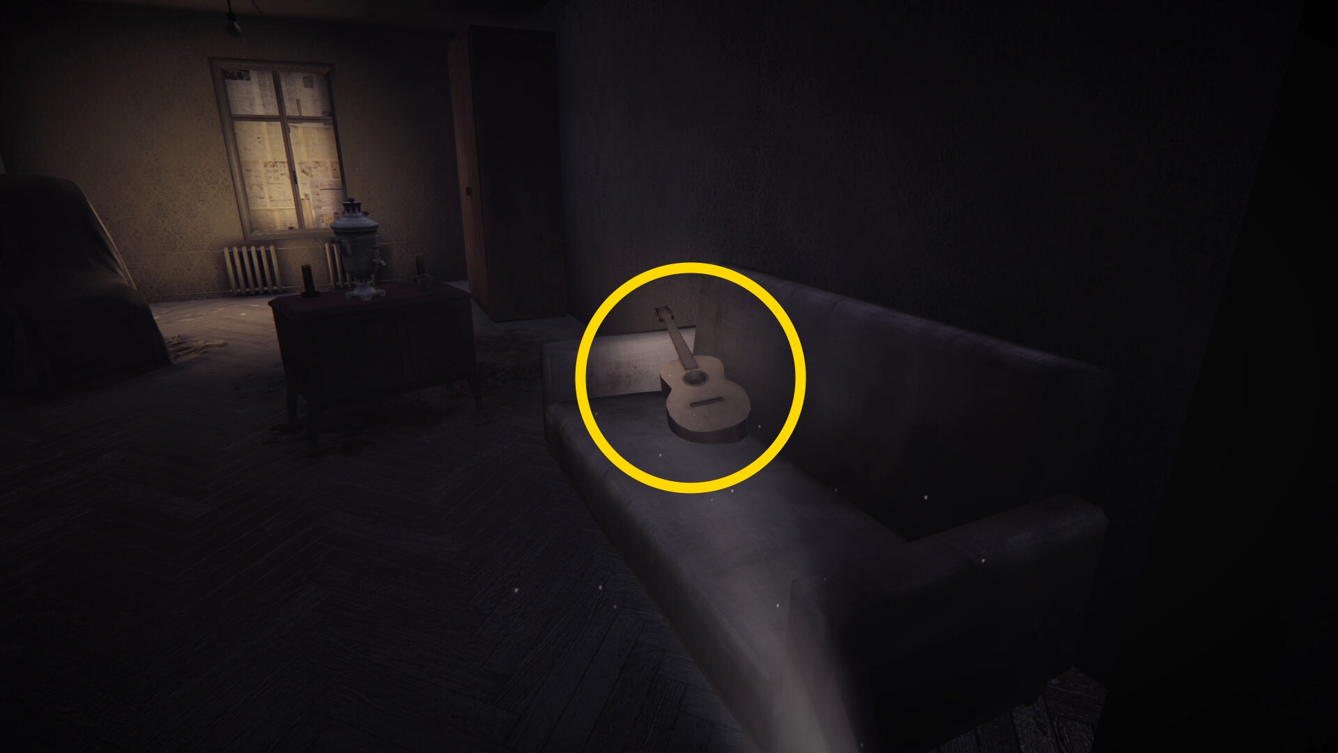 - 入ってすぐ、ソファのところに ギター があり、これを 3回弾く(モラルポイント:16/17)