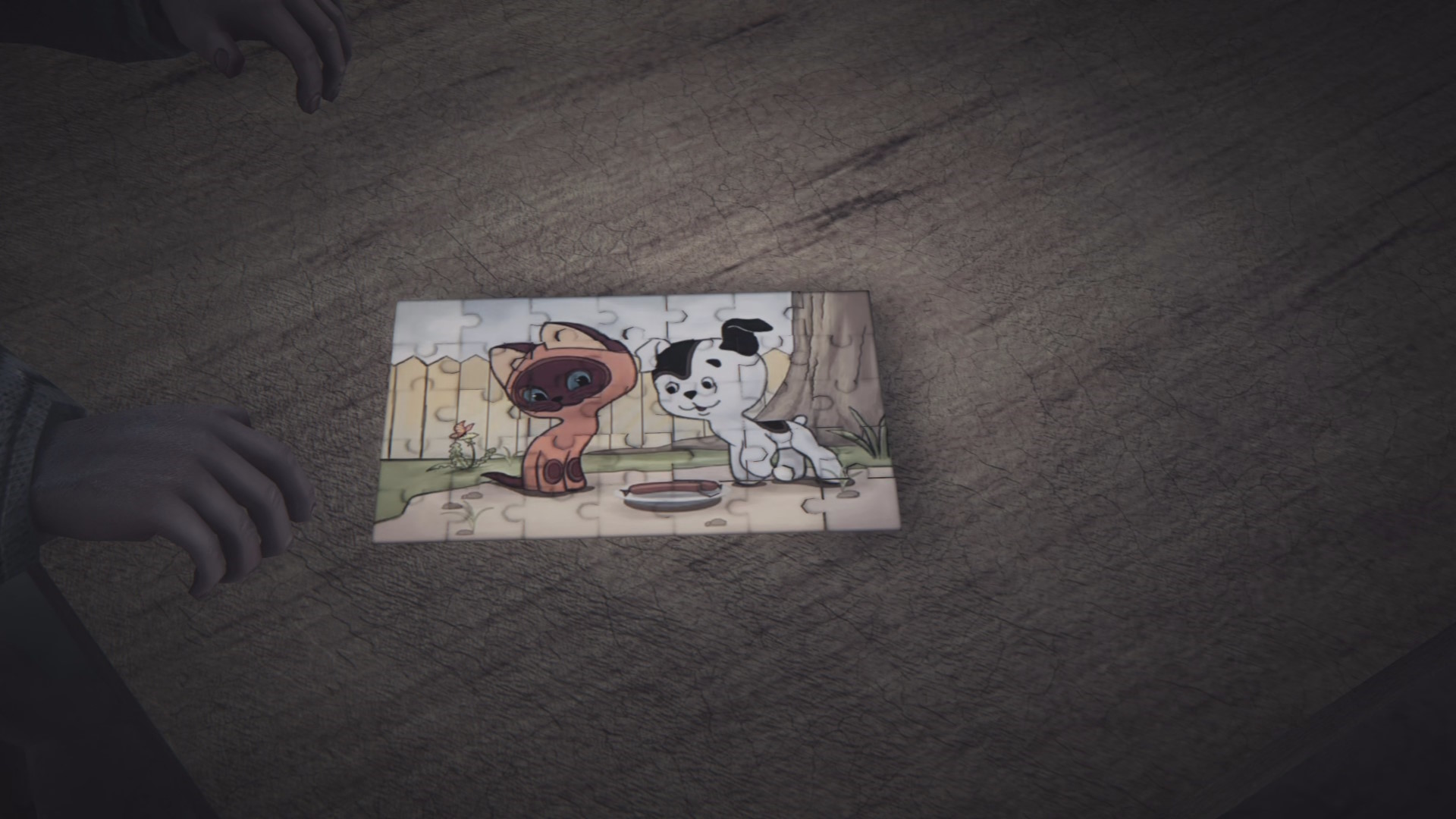 - 傍らのテーブルに少年がおり、ジグソーパズルを手伝うことになる