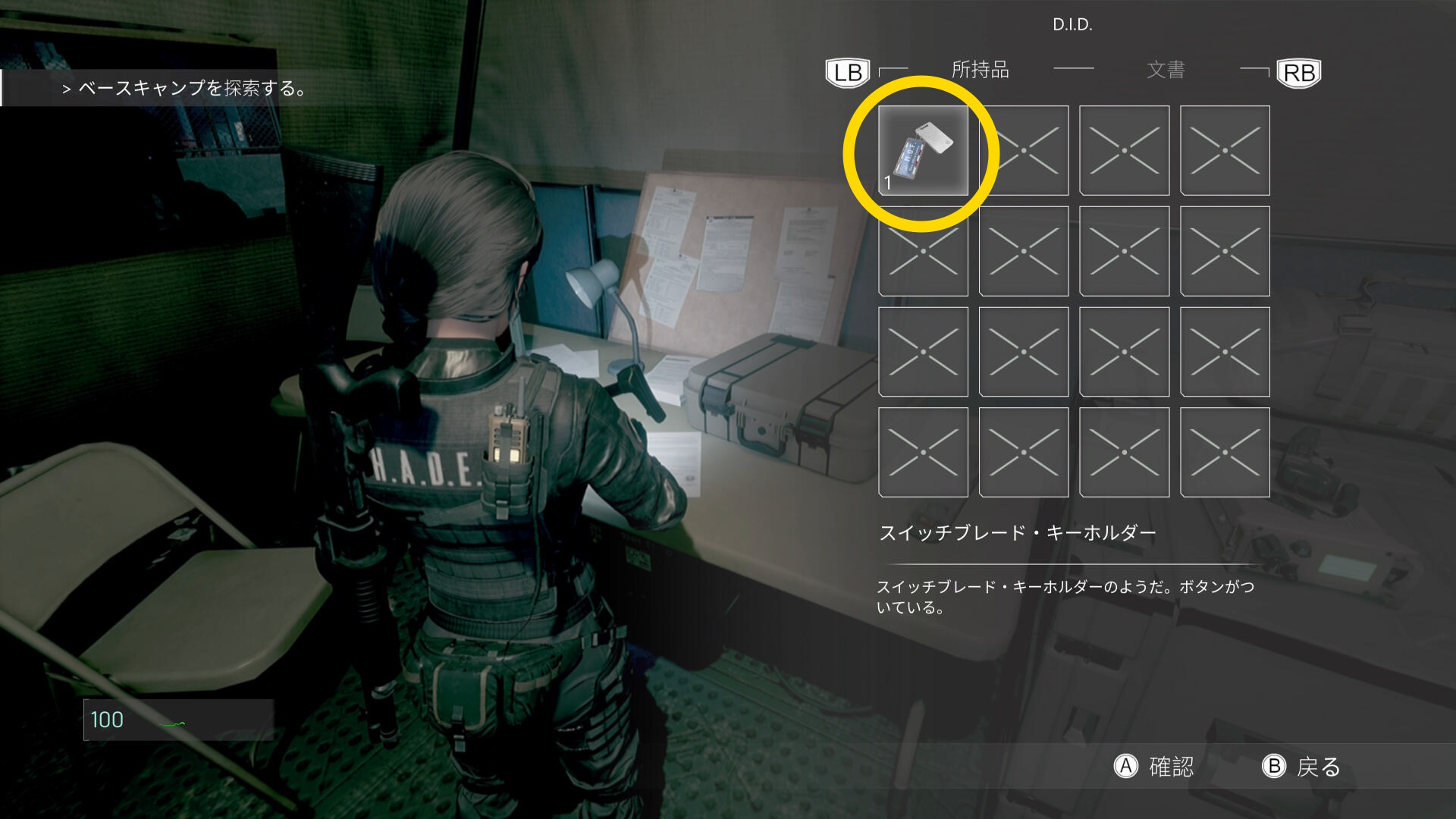 • セレクトボタンを押して D.I.D. メニューを開き、スイッチブレード・キーホルダーにカーソルを合わせて A ボタンを押す