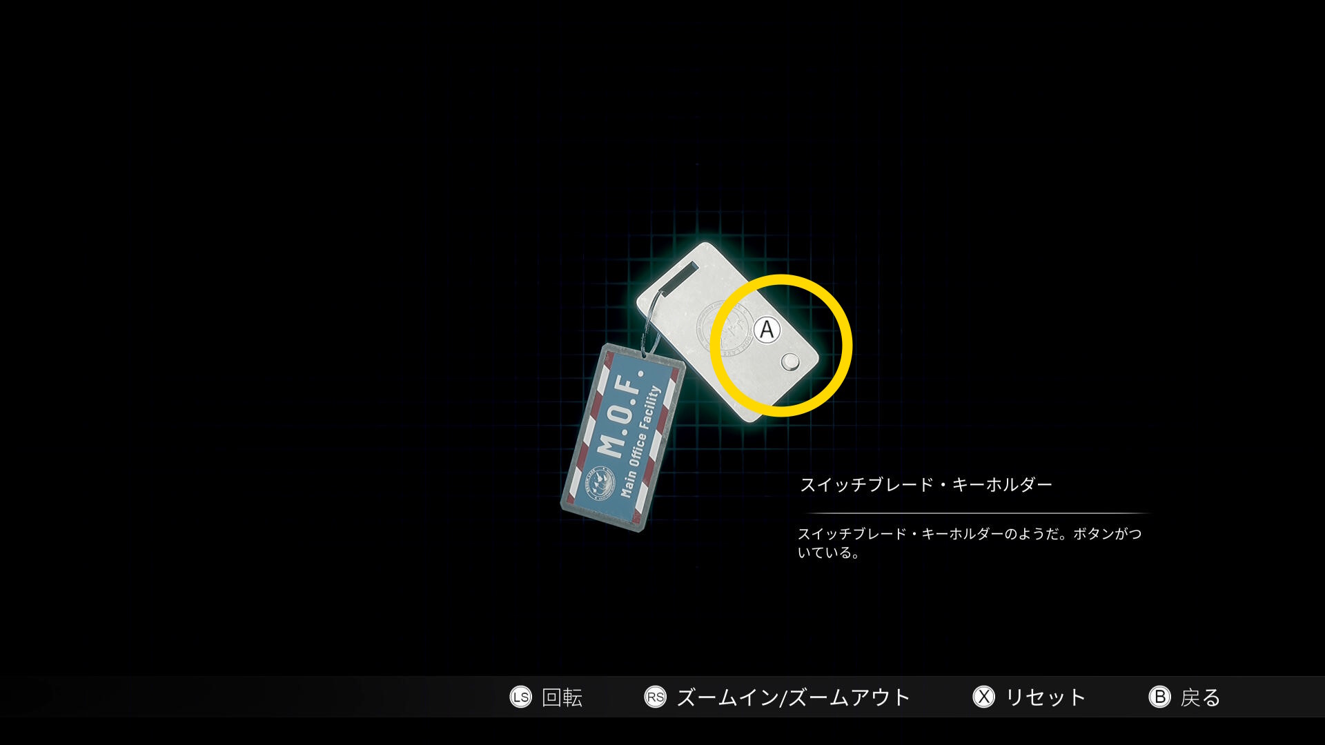• アイテムが拡大され、A ボタンを押してキーホルダーのボタンを押す