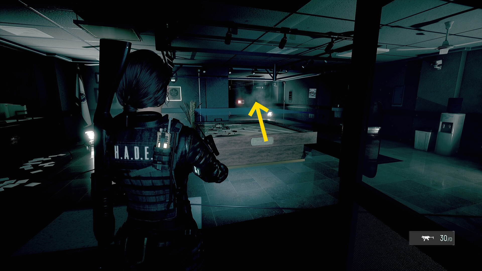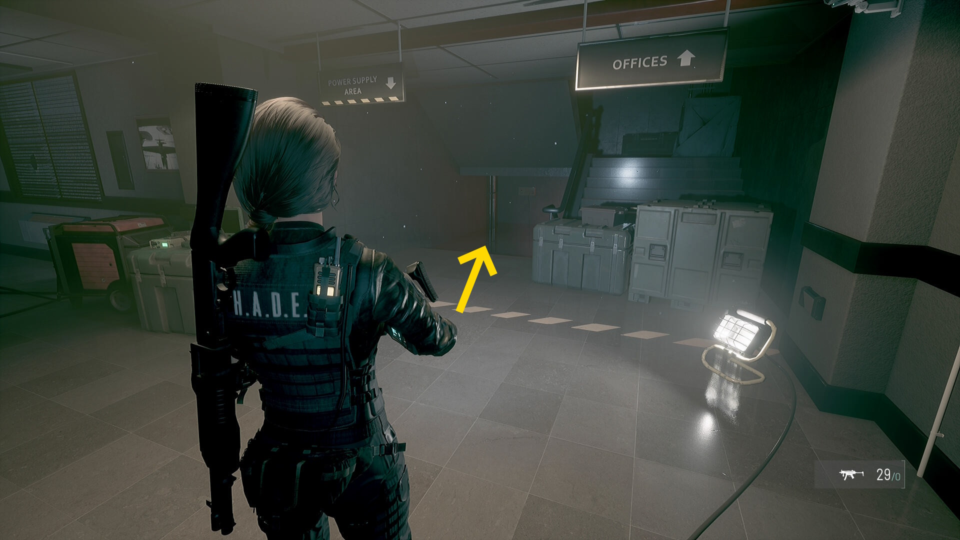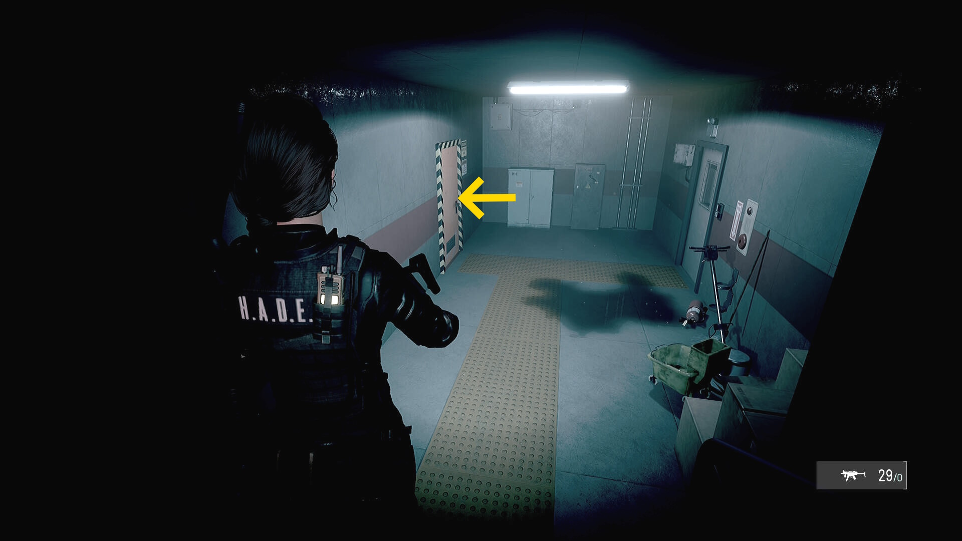 • 前に進むと武器(および懐中電灯)装備のチュートリアル