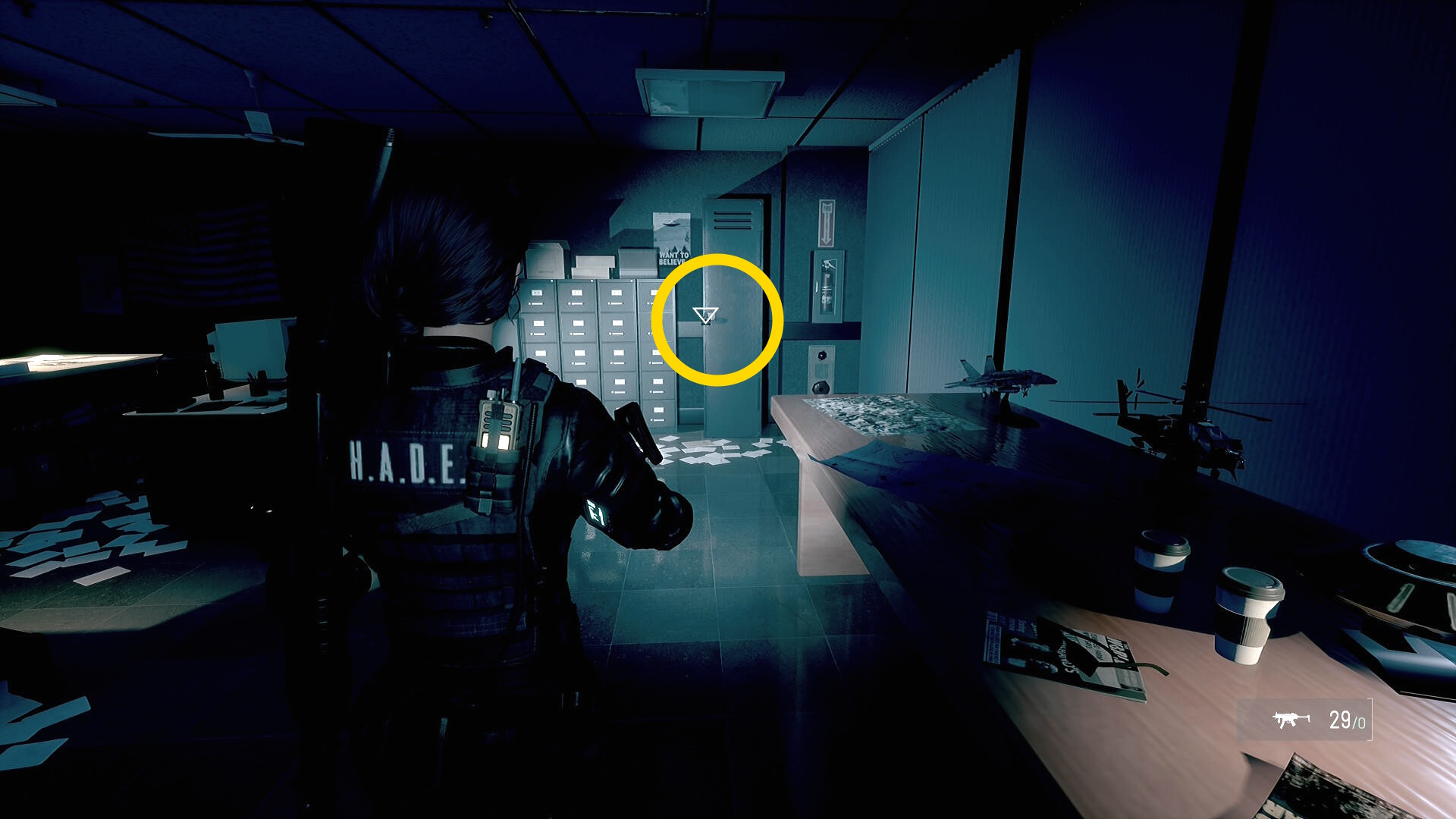 • サークルが青色に変わる距離になるまで対象物(今回で言えば正面のドア)に近づき、RT 長押しすればスキャン完了 ⇒ ヴォルテクス・ロック・モデルT-1000(スキャナー:1/18)