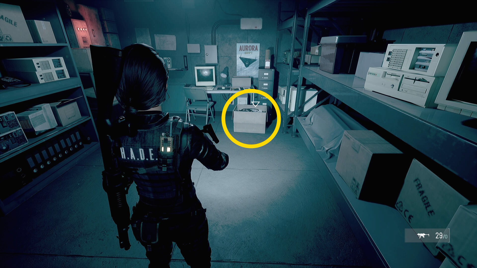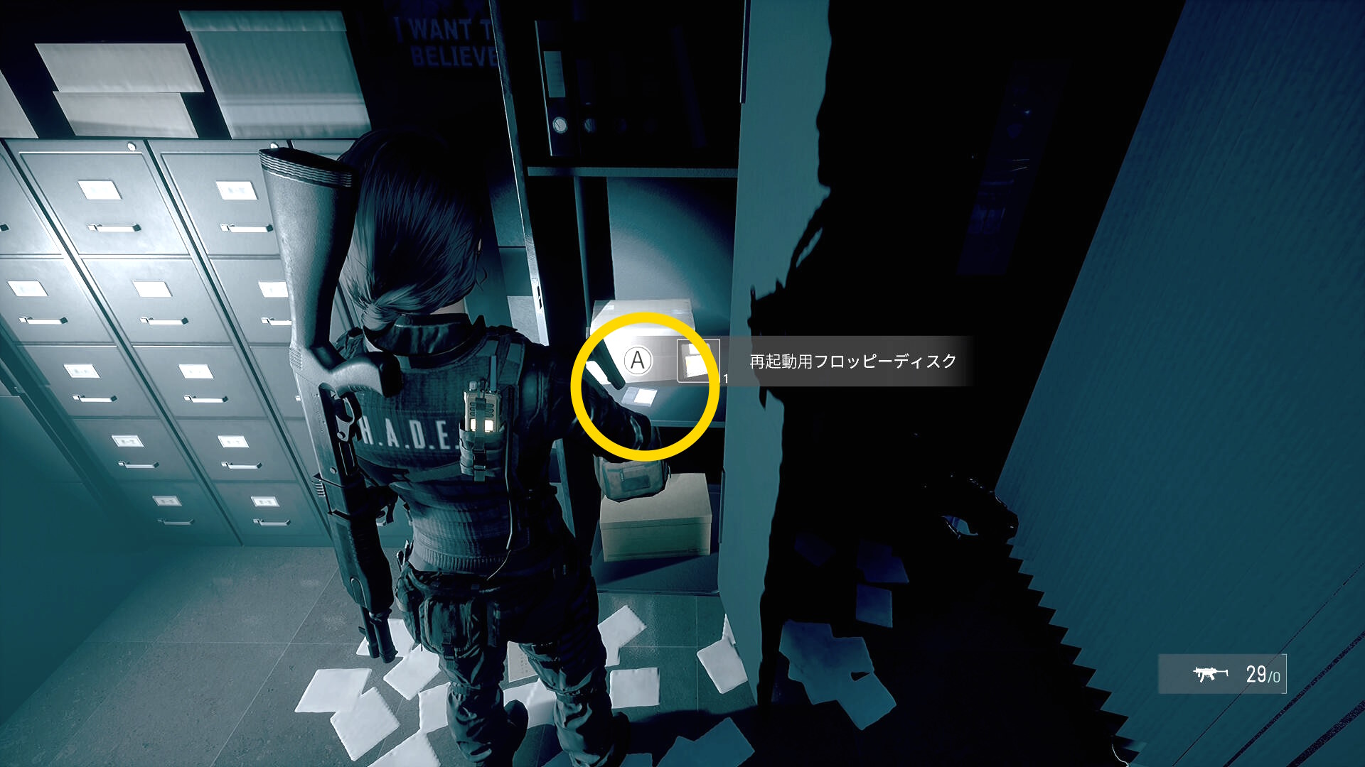 • 向かいの部屋に入り、段ボール箱に中から オーバーライドケーブル を回収