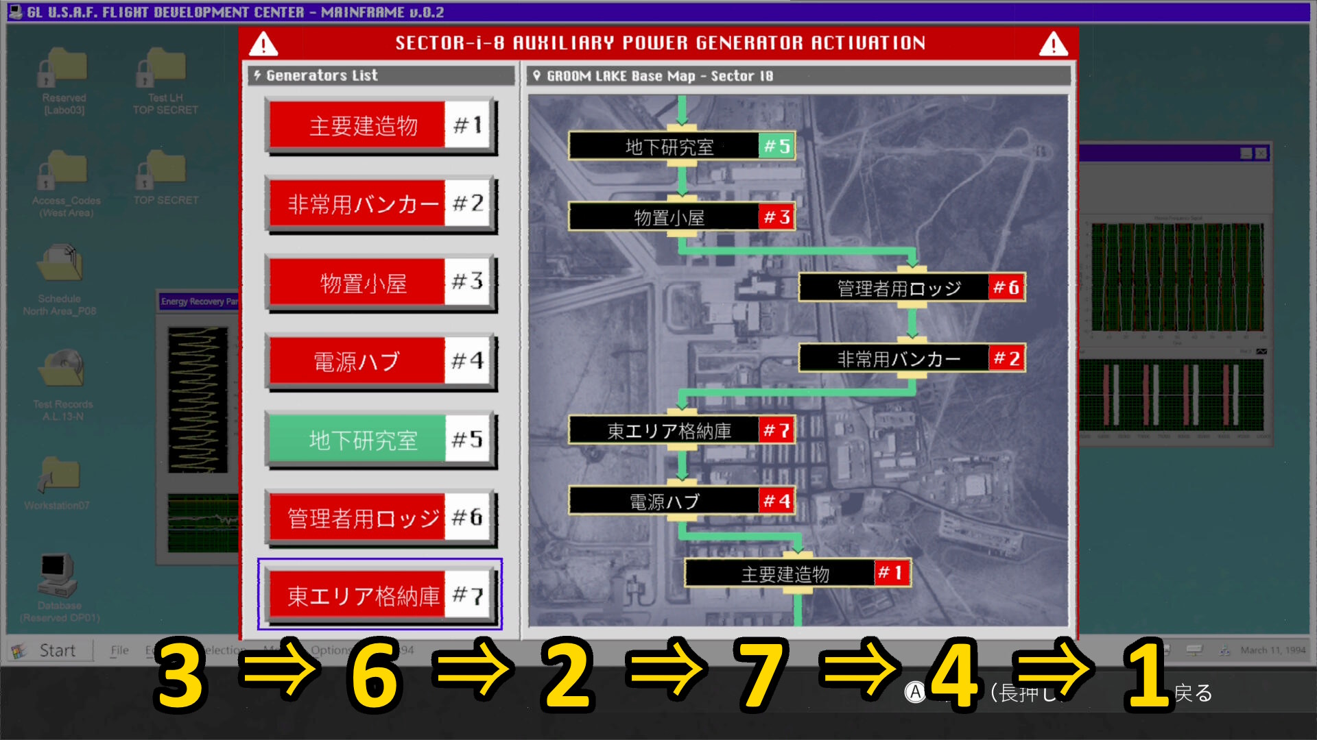 • 左の赤いボタンを 3 ⇒ 6 ⇒ 2 ⇒ 7 ⇒ 4 ⇒ 1 の順に A 長押しすればオーケー