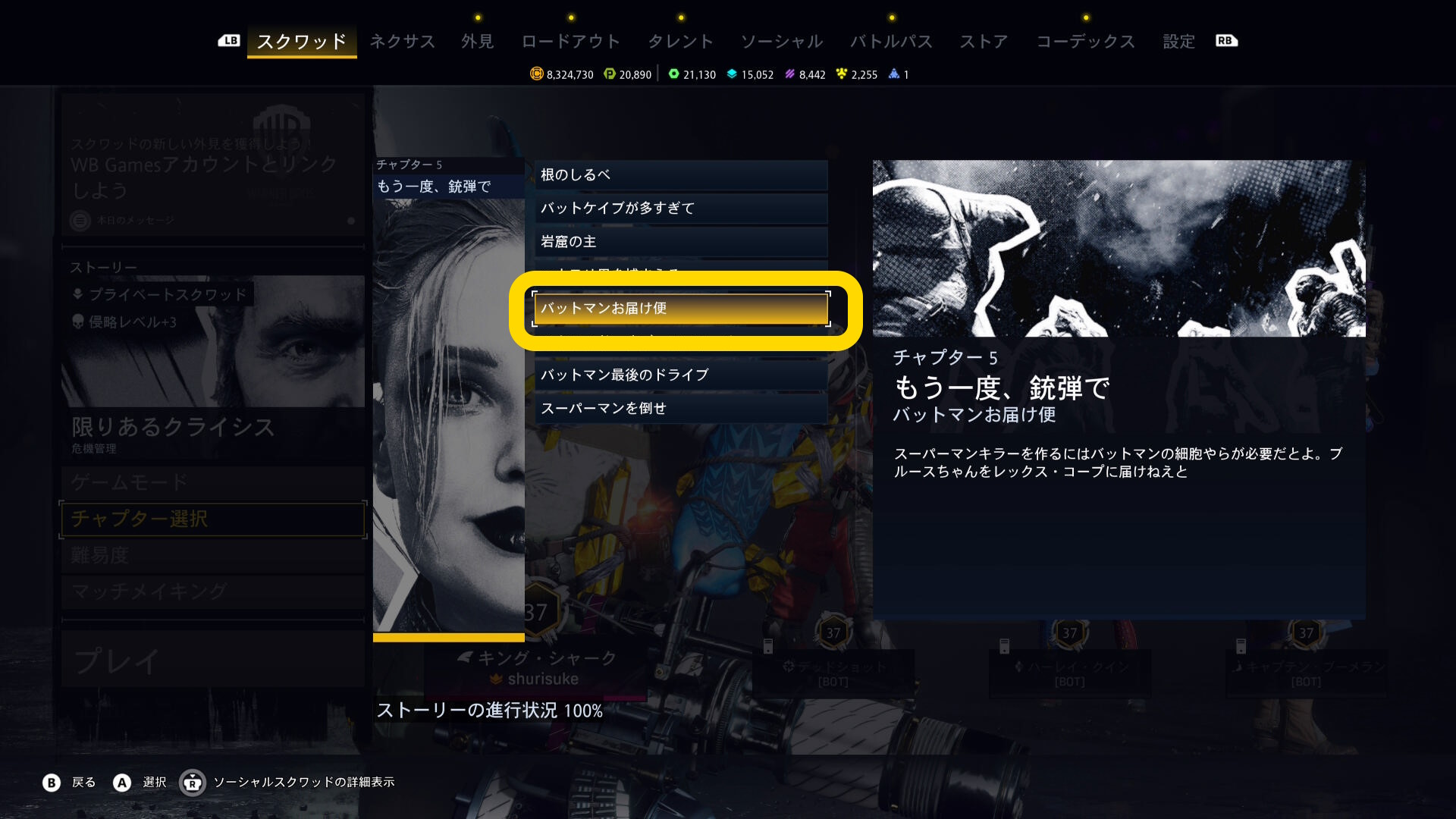 | お前の世界は俺のもの | レックス・ルーサーのサポートスクワッド最終ミッションをクリアする | 20 |