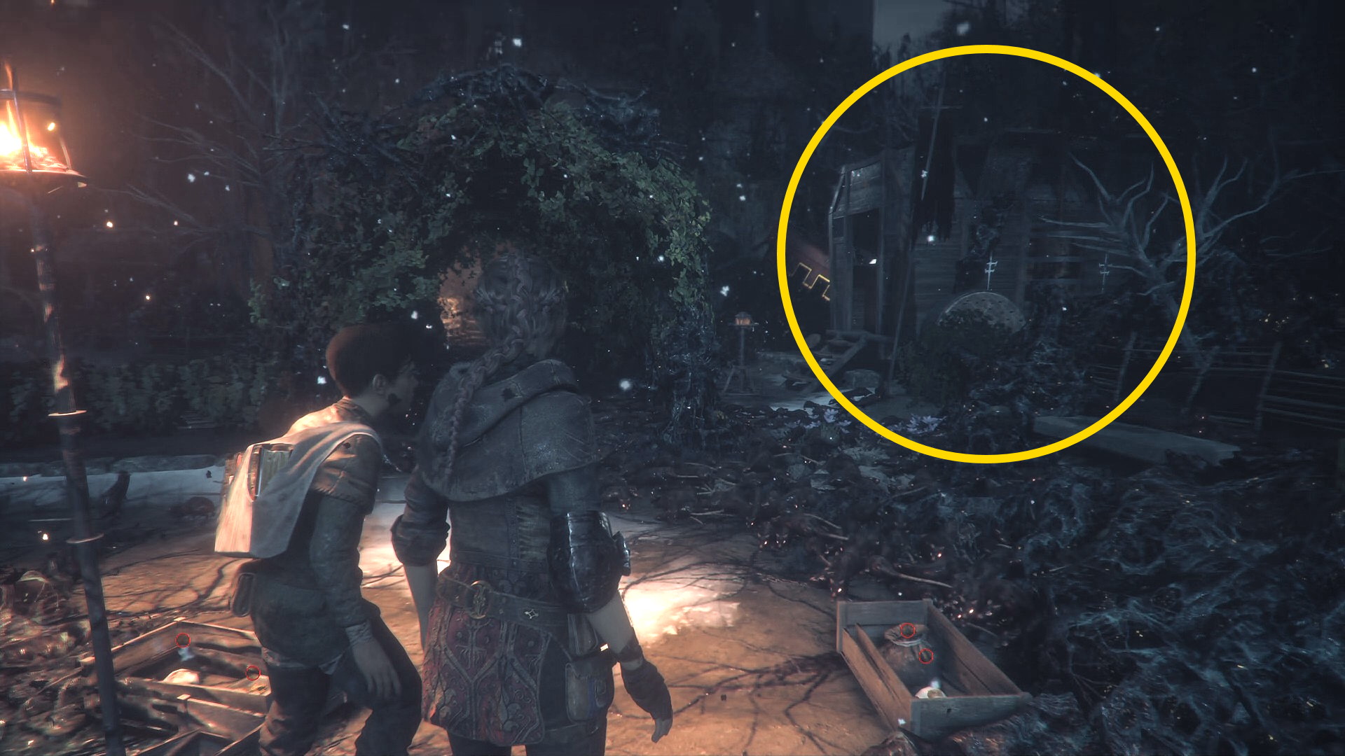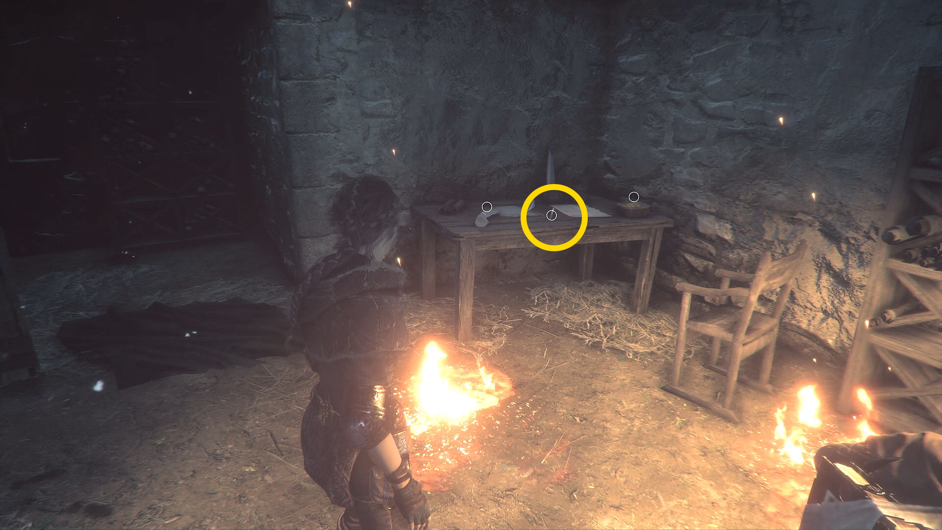 - 右前方奥に藁の残り火が見えるのでイグニファーを投擲