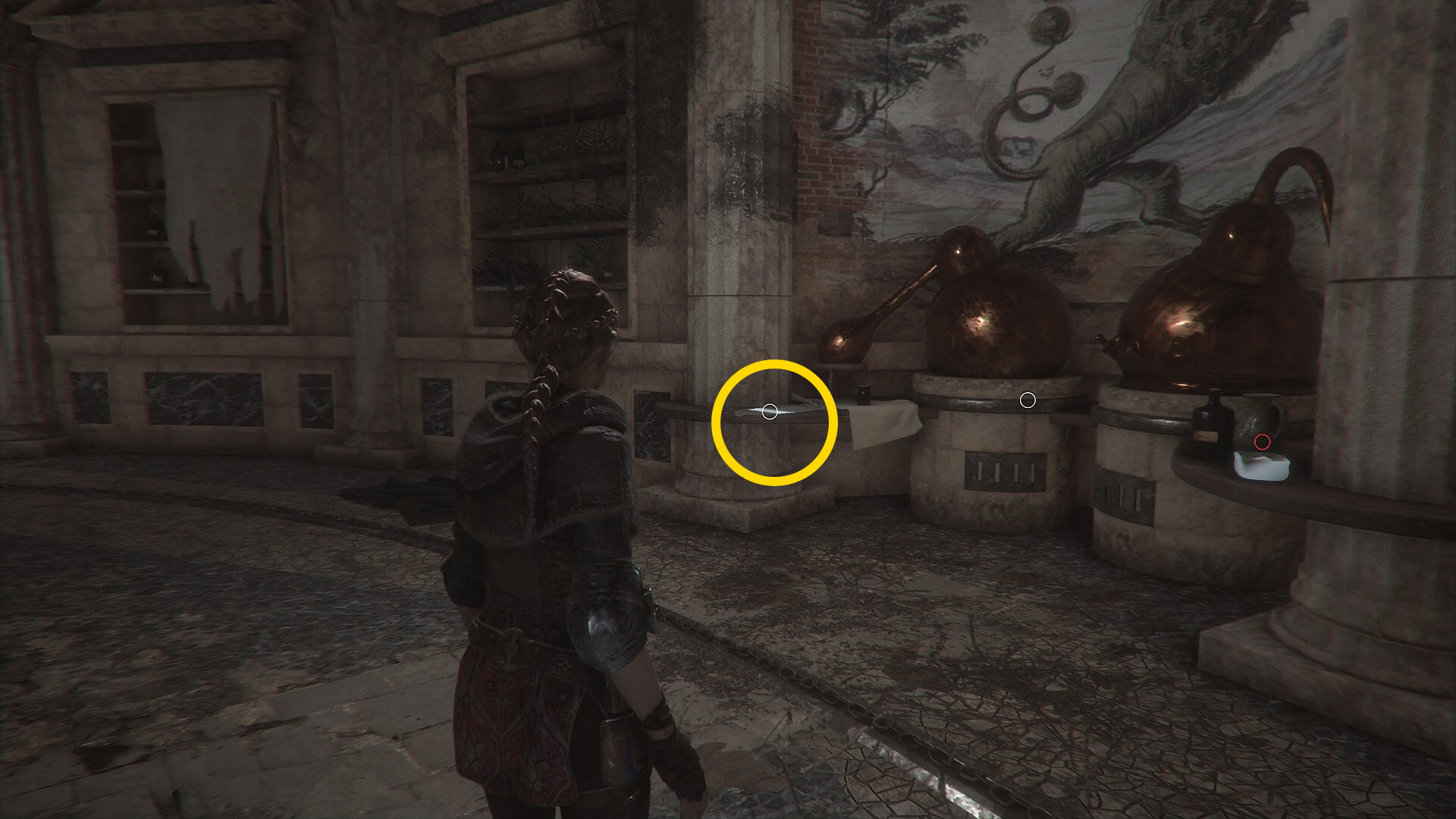 - カットシーン後、入ってきたドア近くの箱に 石、硫黄、アルコール