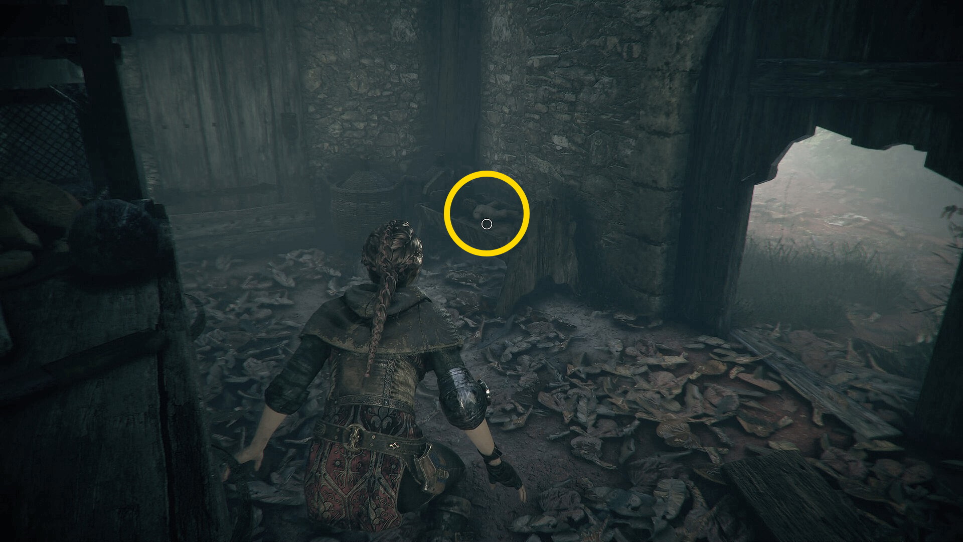 - 扉を通過する前、左側に壊れたドアがあり、しゃがみ移動で中に入ると右側に 人形 (珍品:23/26)