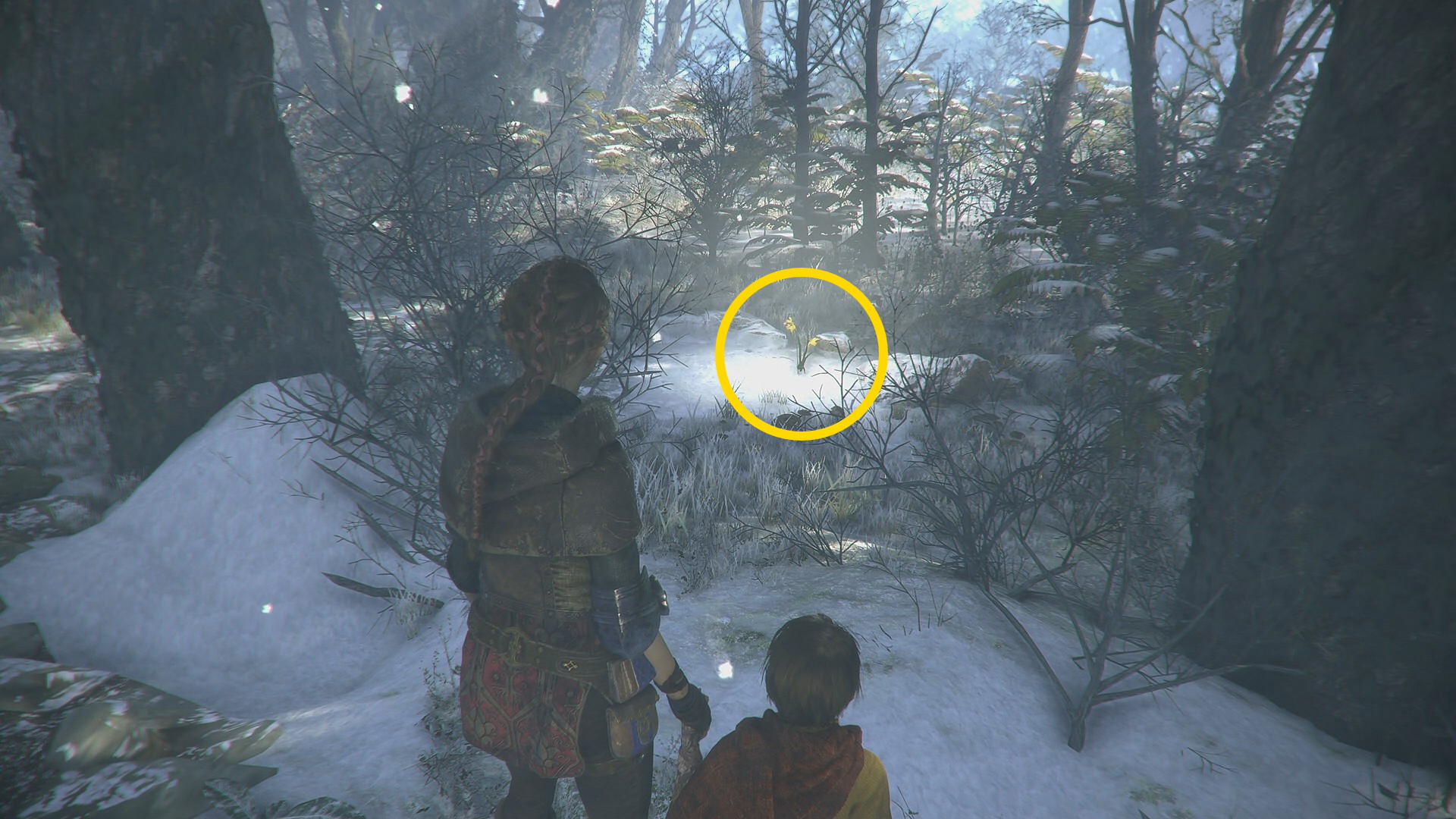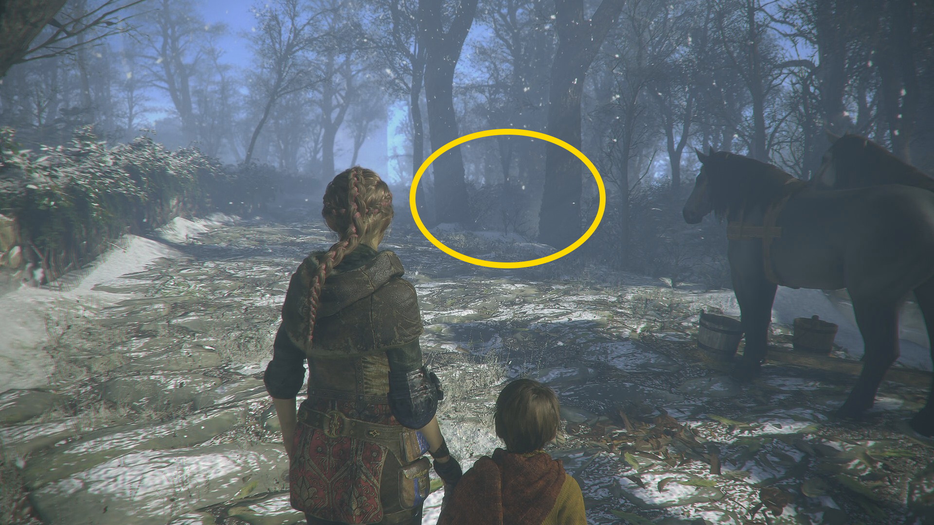 - 馬車の右前方に太い幹が2本あるのでそちらへ