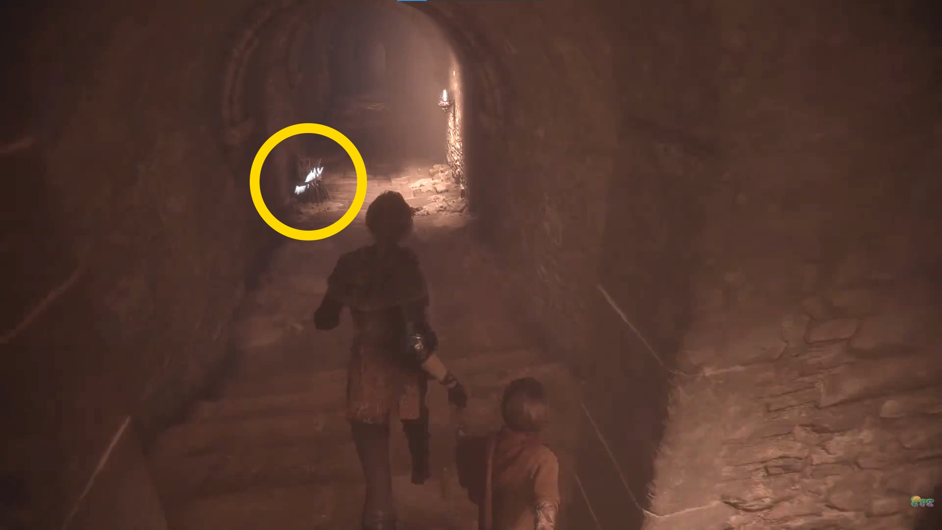 • 通路の左側に棒の束があり、これを回収して右側の燭台で着火