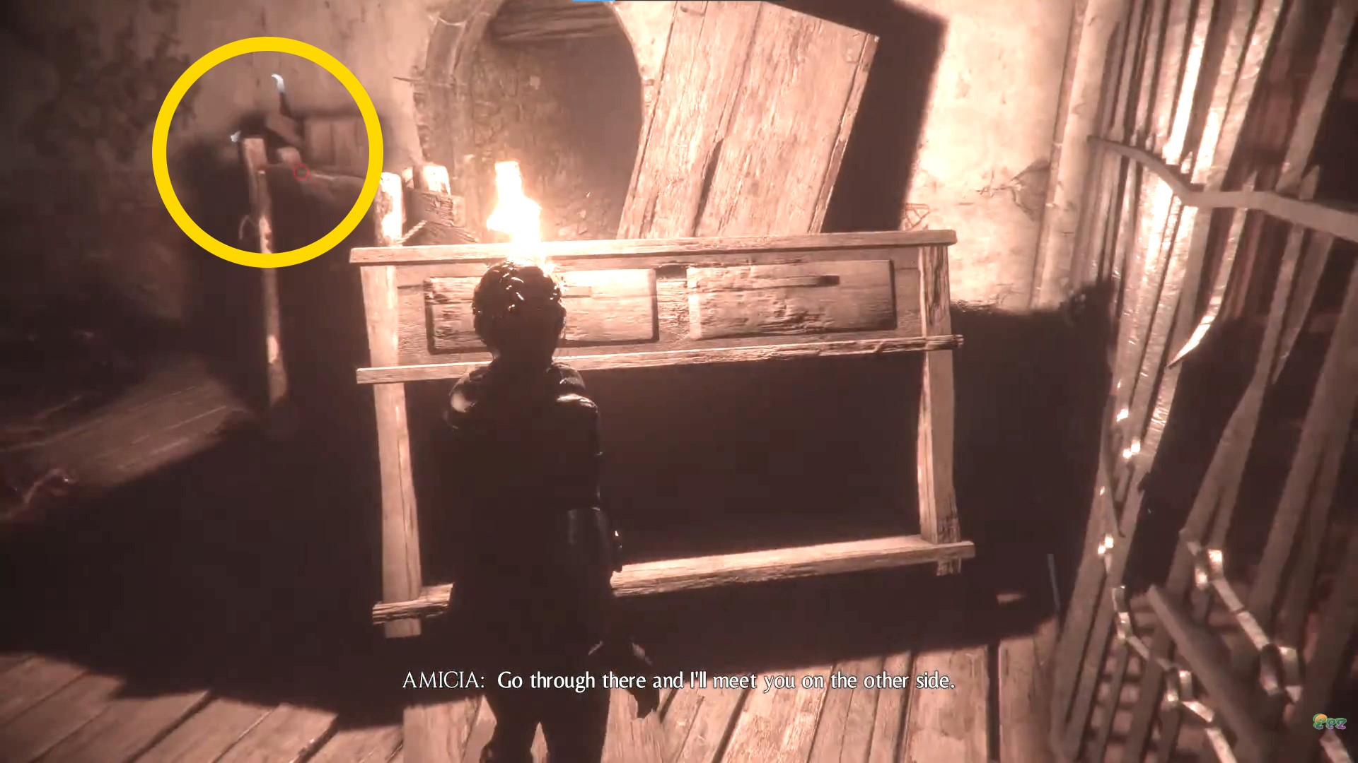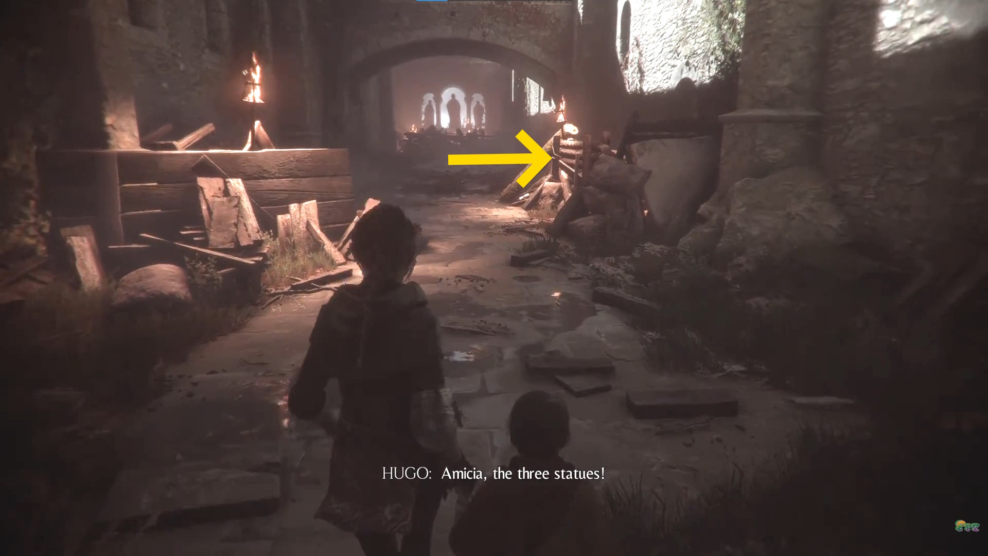 • 右側に松明を設置し、ユーゴがバリケードを乗り越えられるようサポートする