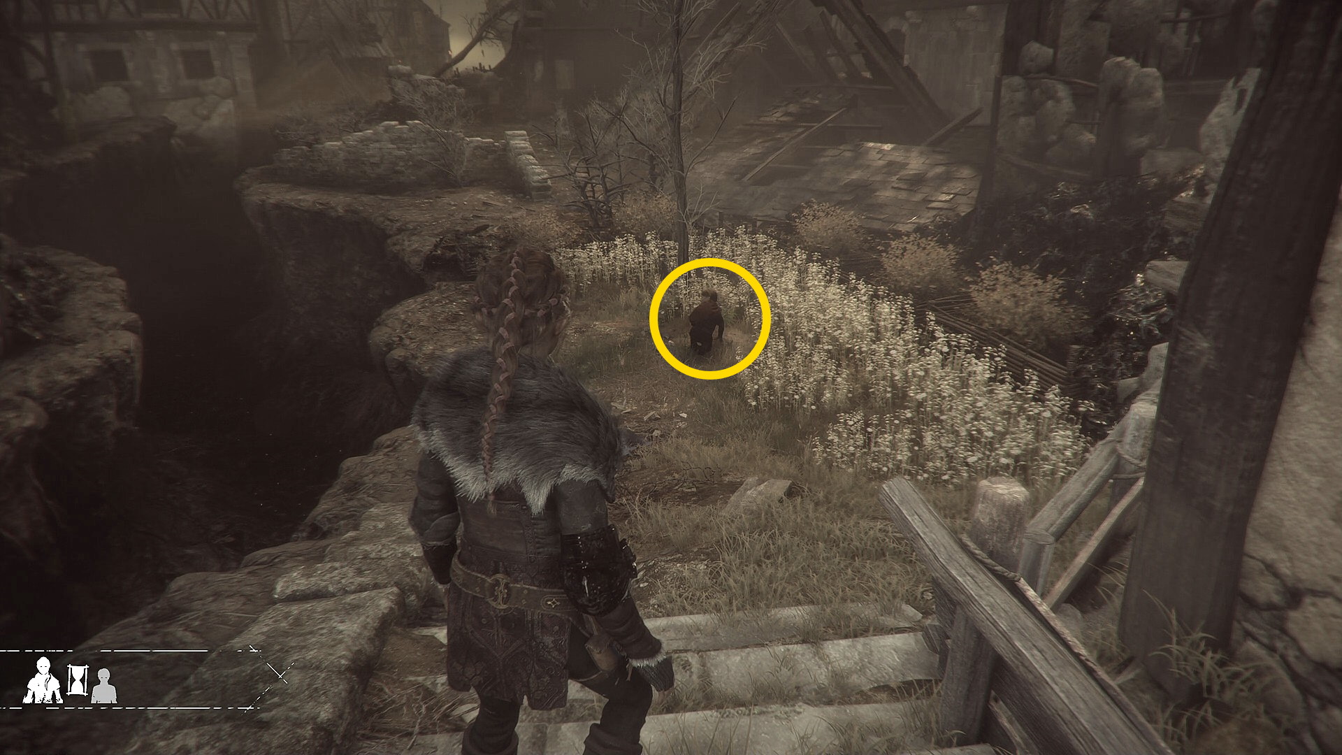 - 4人のラッシュが終わったら、家に入る前に開いた木製のゲートに進み、階段を下りたところに ヘレボルス・ニゲル (ユーゴの採集箱 (13/13)