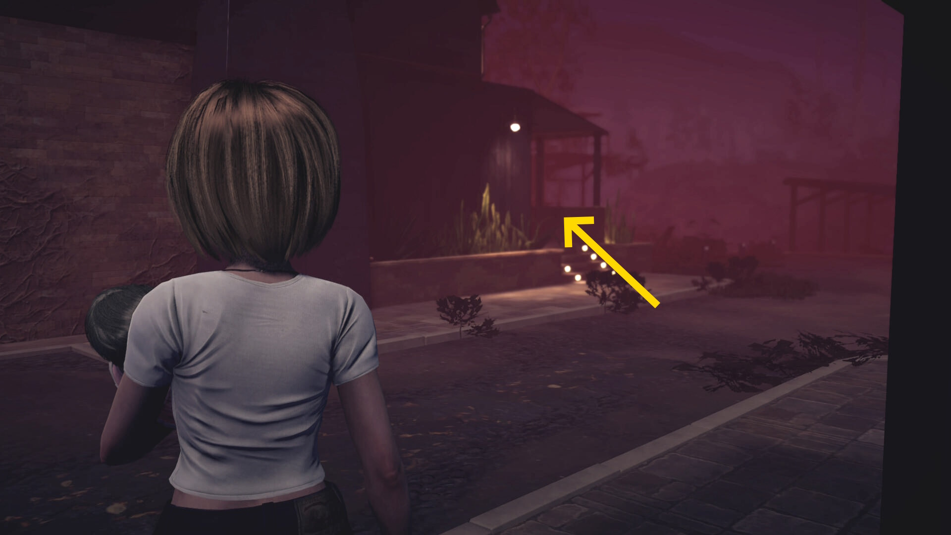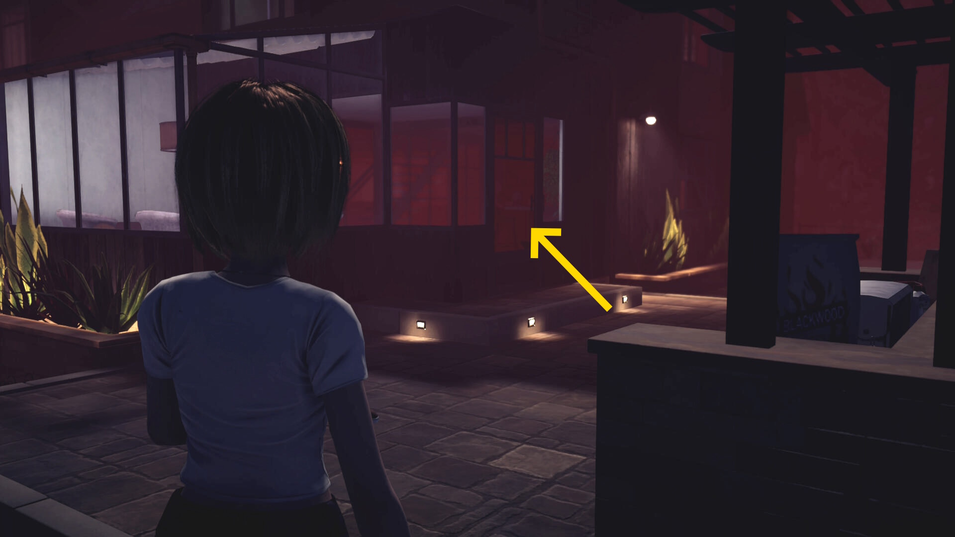 - そこから左後ろを向き、キッチンのドアから自宅に侵入する