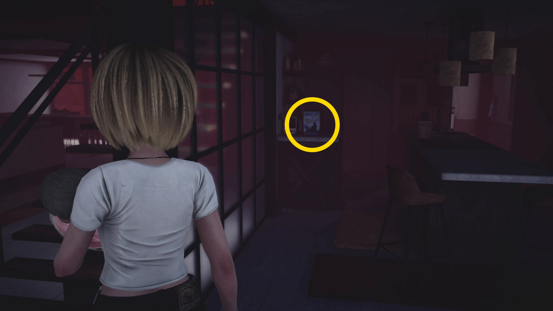 - 階段を上がり、書斎のワイヤレス充電器に置かれた「エドのスマートフォン」を操作してフェイとジェニーの写真を消去する(消去しますか?と聞かれ Yes No が表示されるがフェイが選んでくれる)