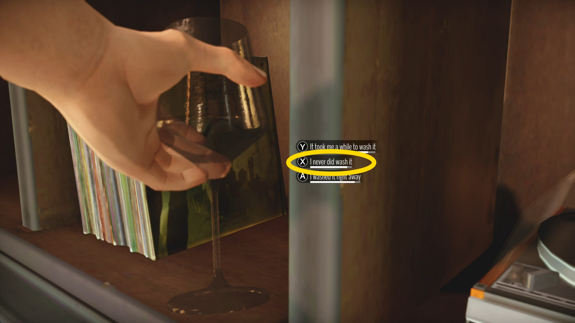 - エドが翌朝起きたシーンのあと、フェイが使ったワイングラスにフォーカスする場面があり、「 I never did wash it 」を選んでおくとよいでしょう(制限時間あり)