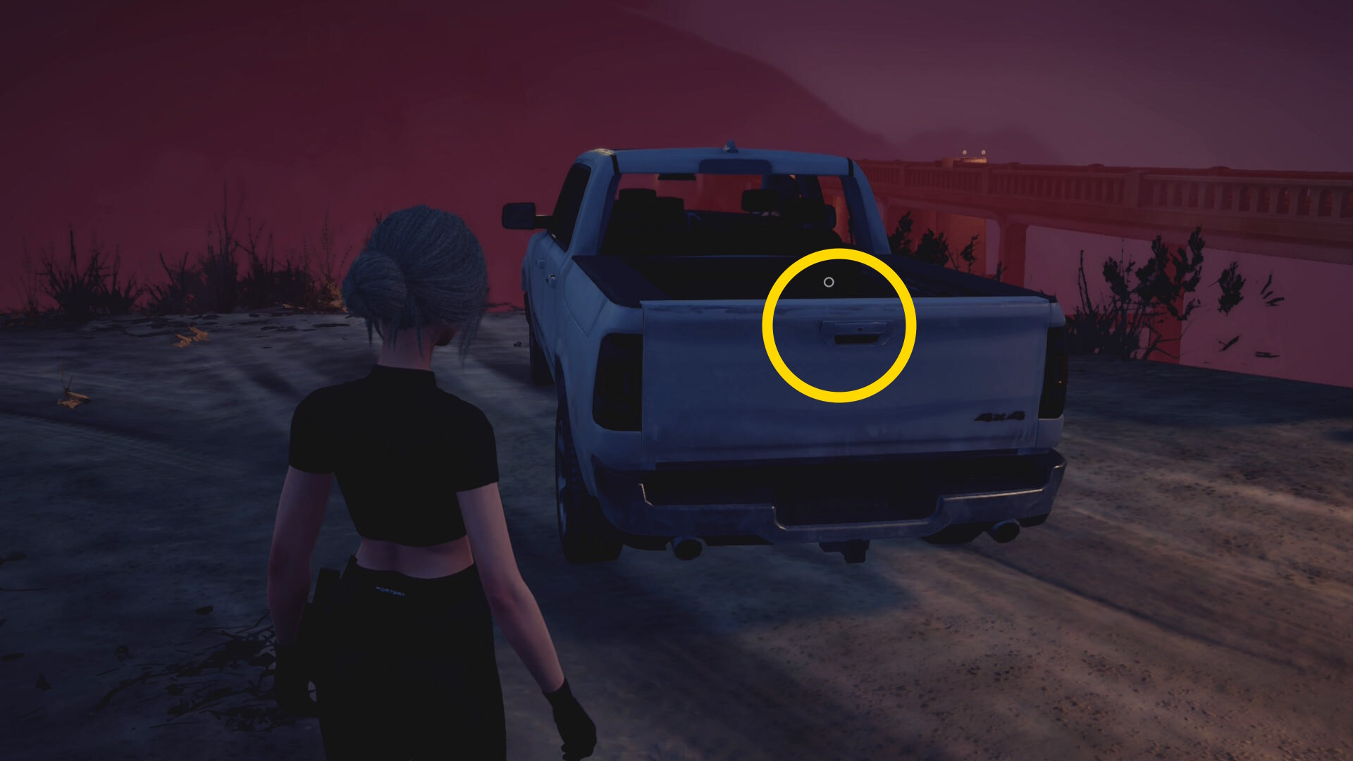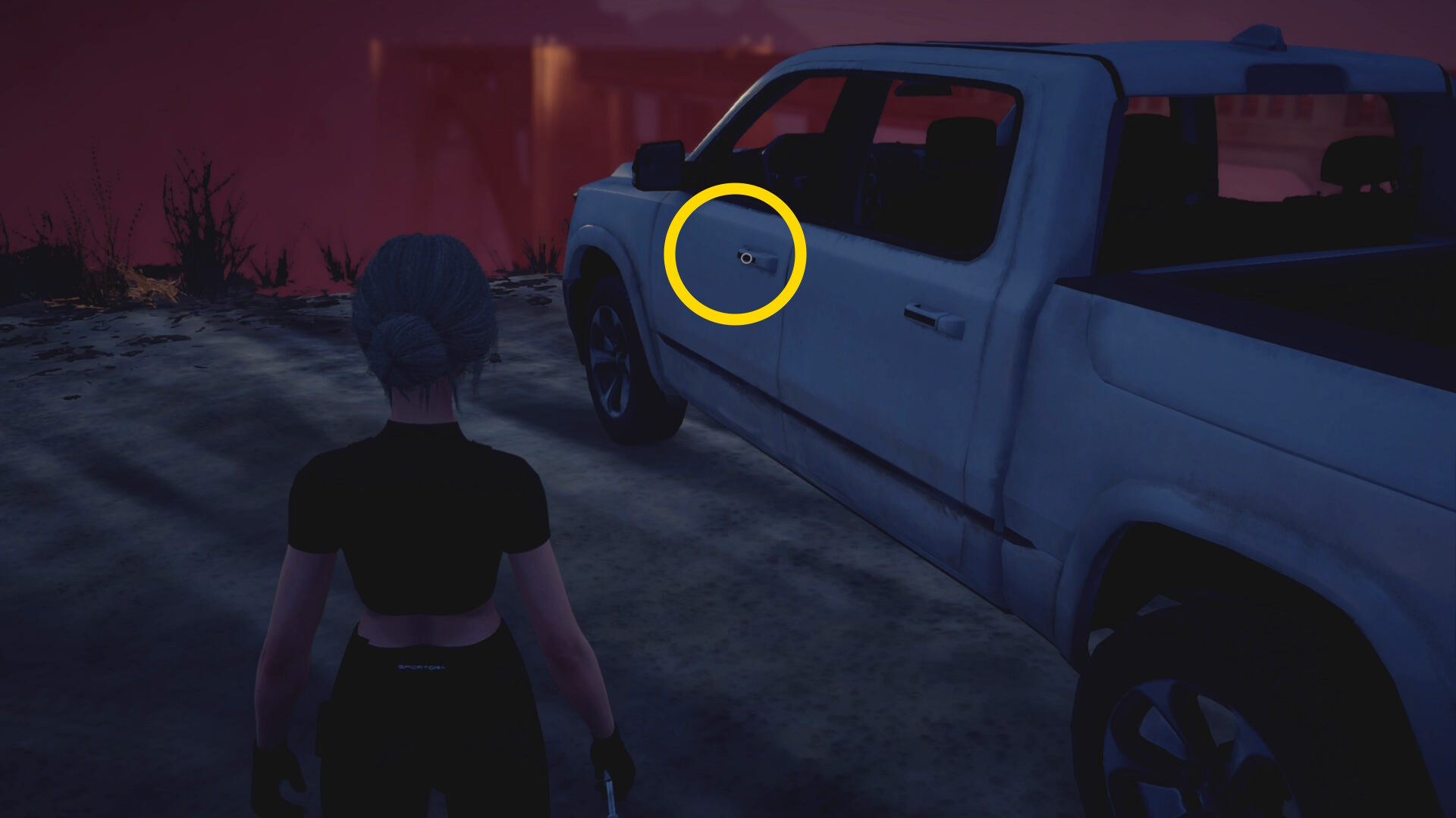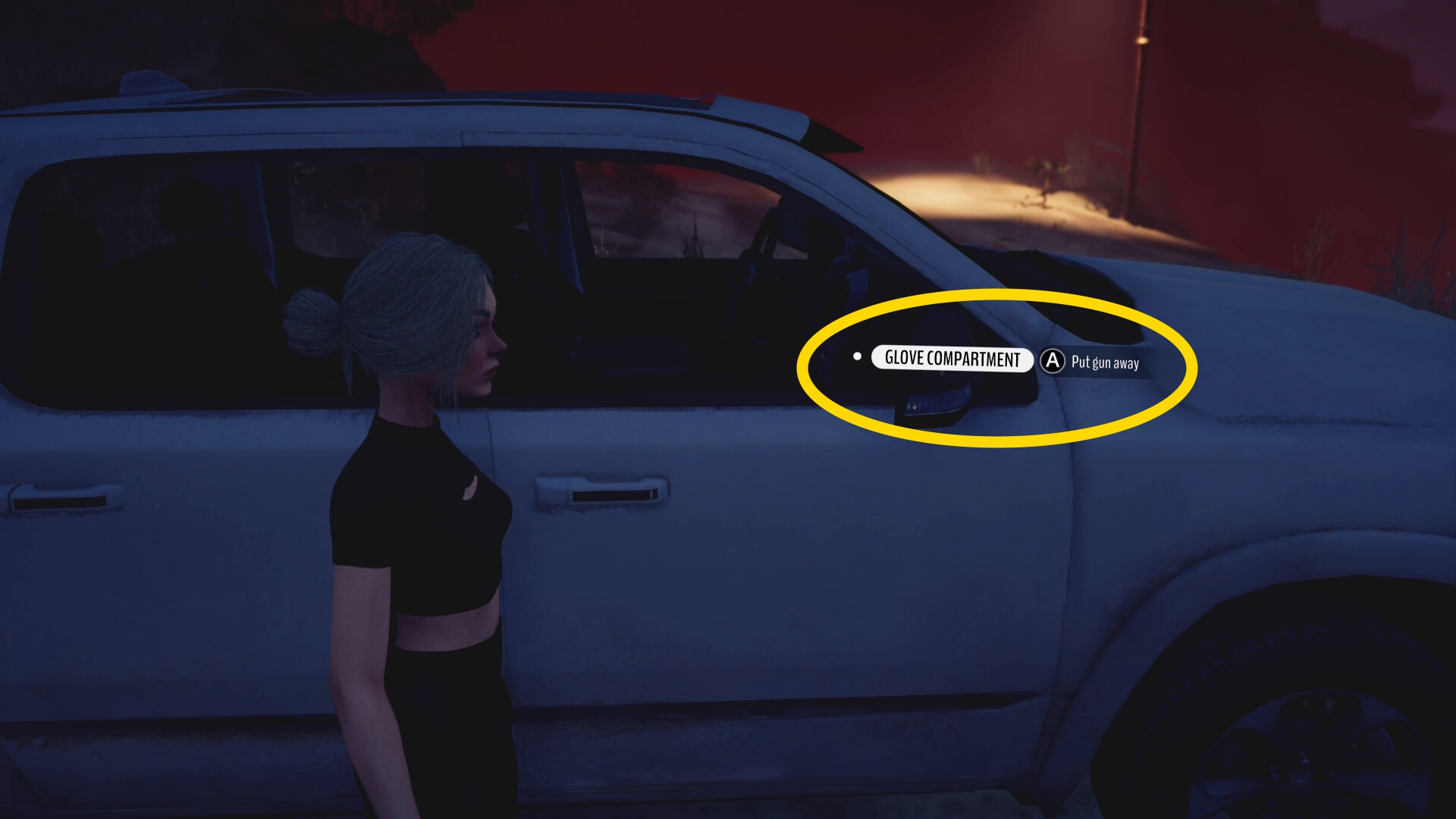 - LS を下に入力してグローブボックスを開け、銃を放り込む