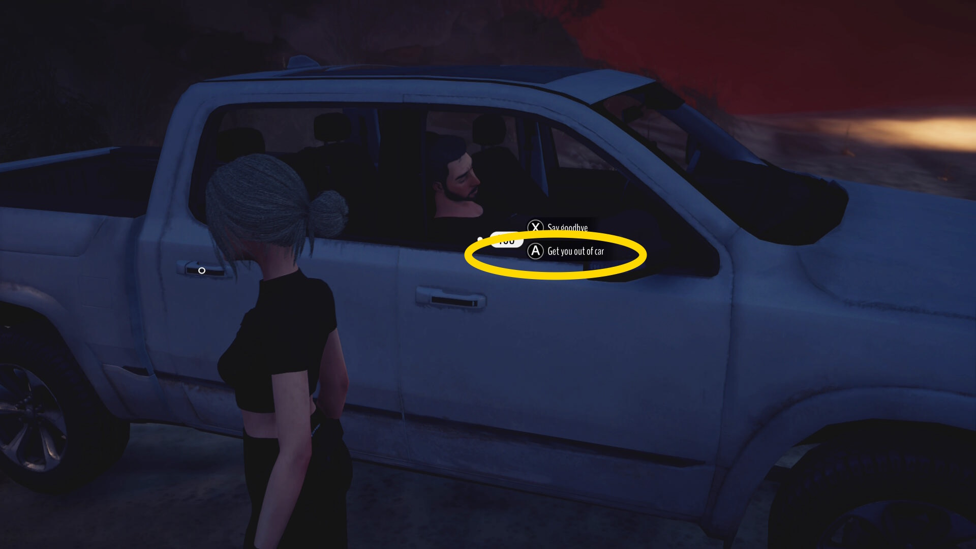 - エドに近づき、選択肢「 Get you out of car 」を選ぶ