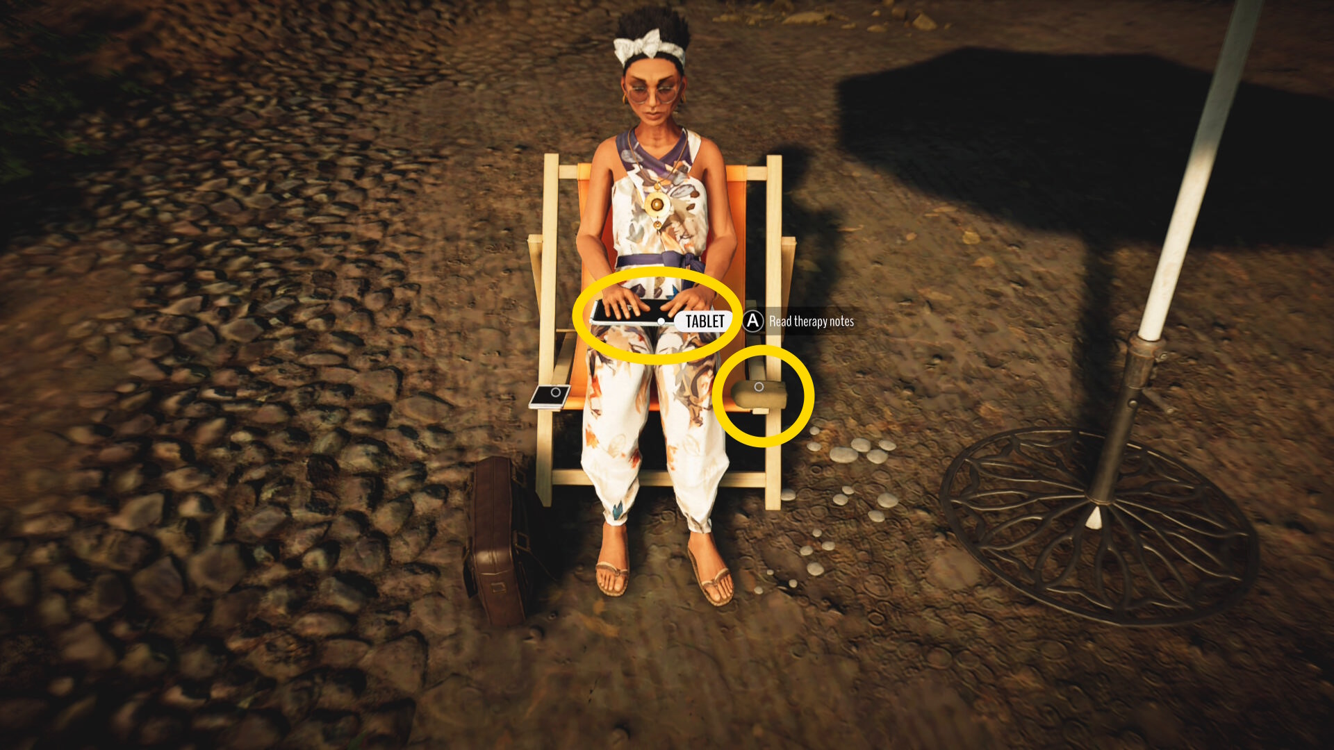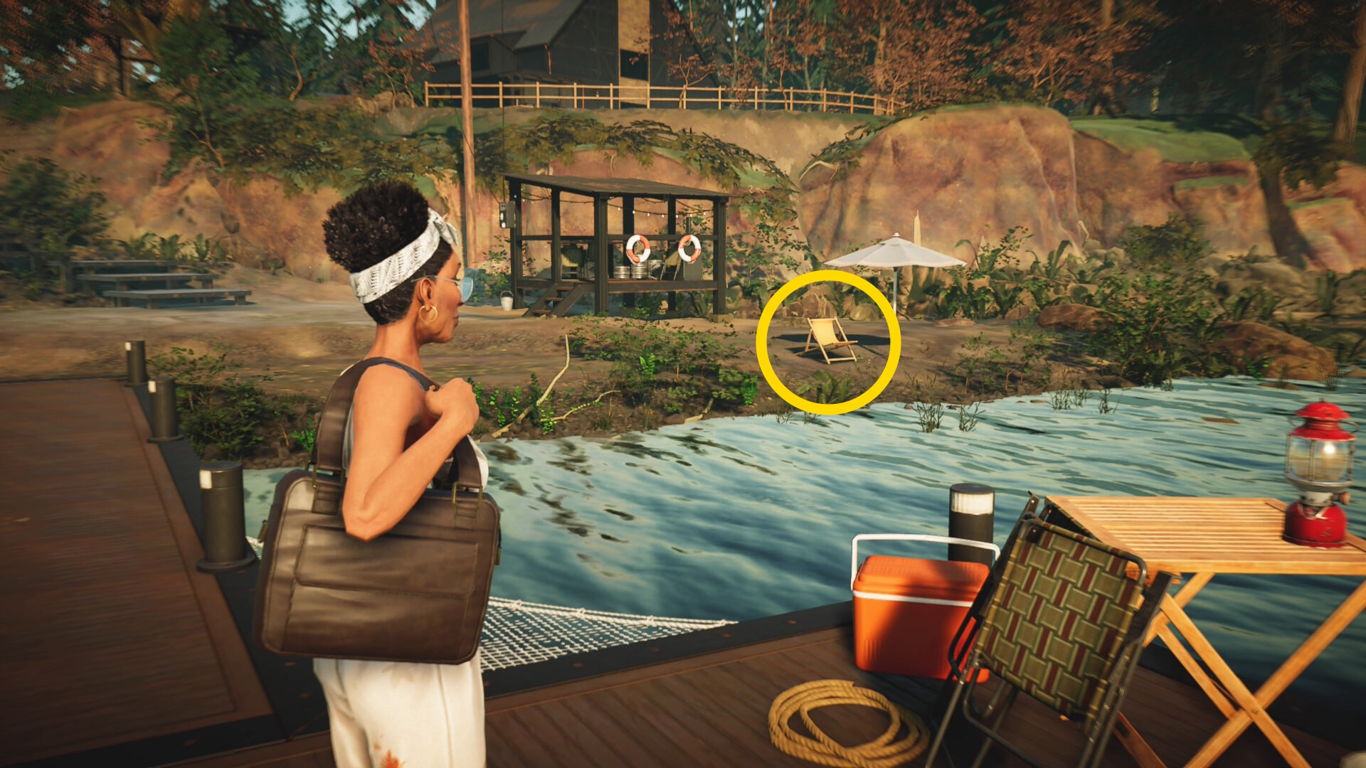 - デッキチェアに座るとミッション目標「 Look for a good place outside 」クリア