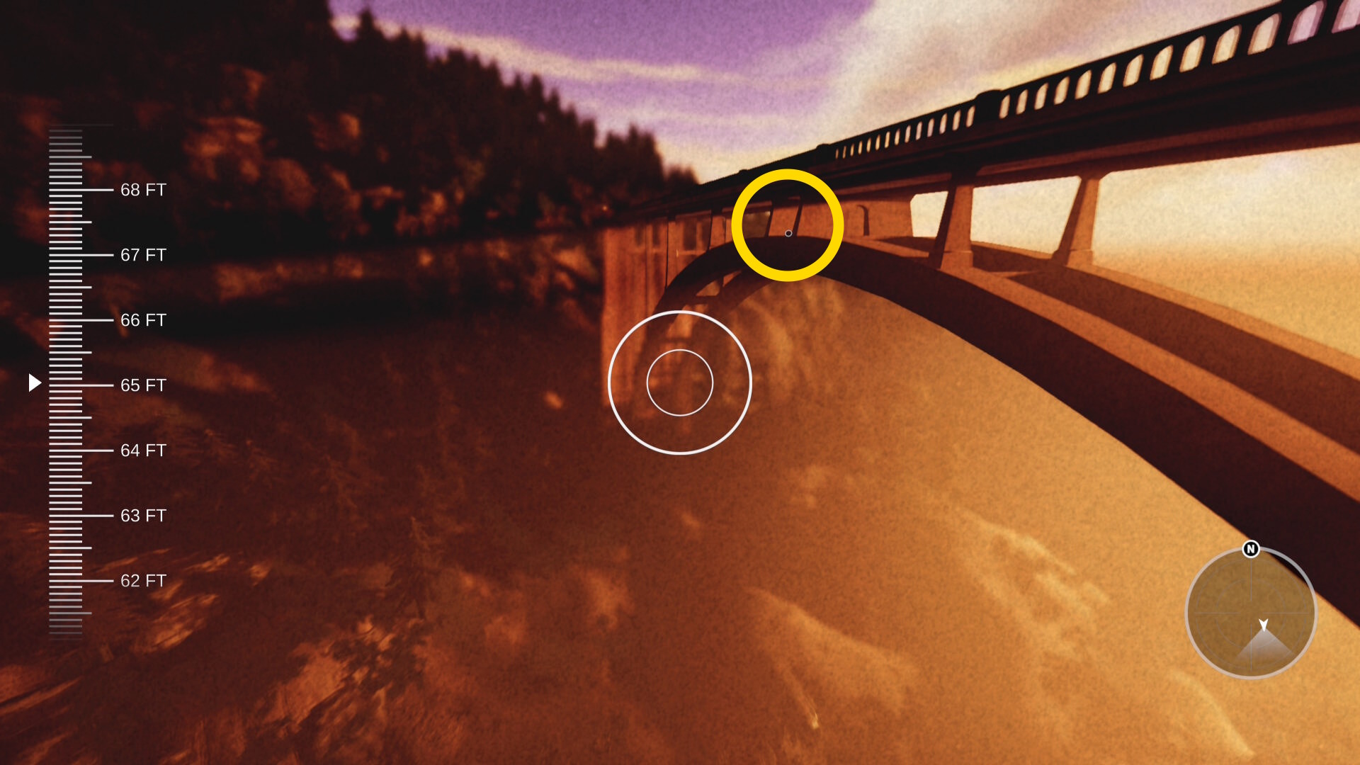 - ミッション目標「 Find proof of Faye’s hoax on the bridge 」と「 Look at the bottom of the ravine 」クリア
