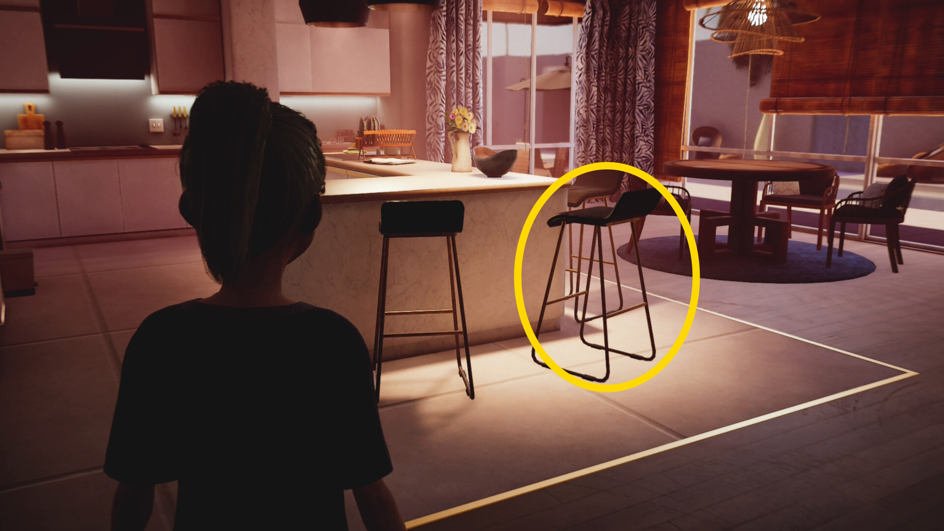 - 奥にあるグラスの食器棚を調べ、今ほど調べた椅子を運ぶ