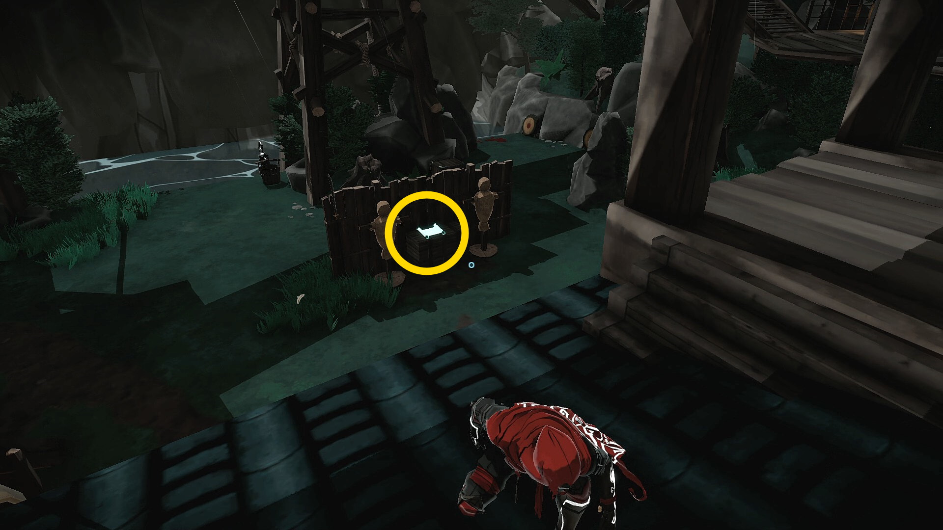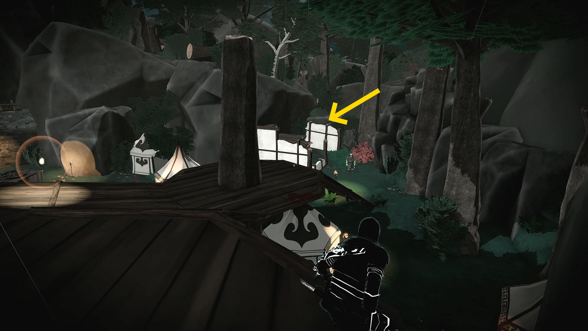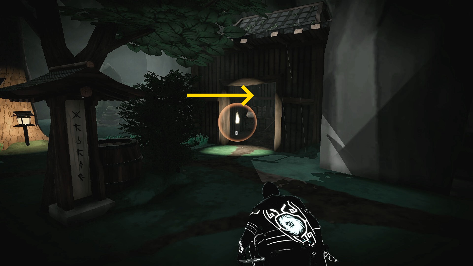 - 橋を下ろすため、右前方にある小さな屋敷の敷地内に入り、上部通路の先にあるクランクを操作する