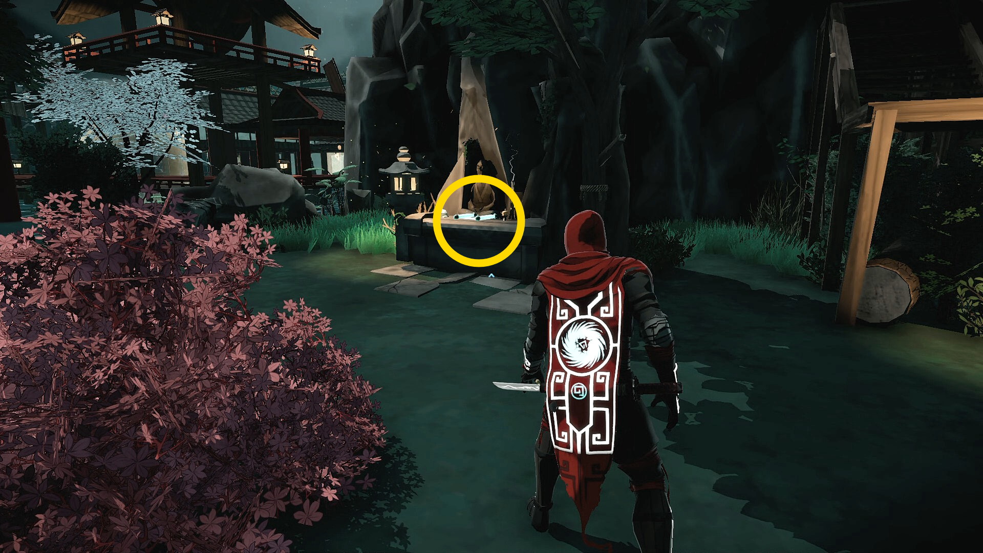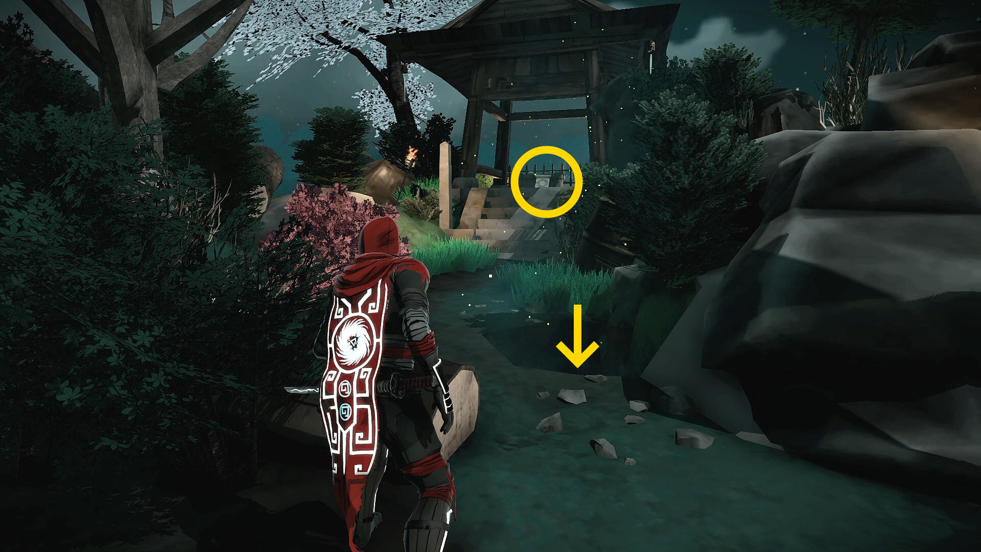 - ライトオーブを破壊して次のエリアに向かうが、橋の真ん中から右側の川に浮かぶ浮島へシャドーリープして奥のエリアに入る