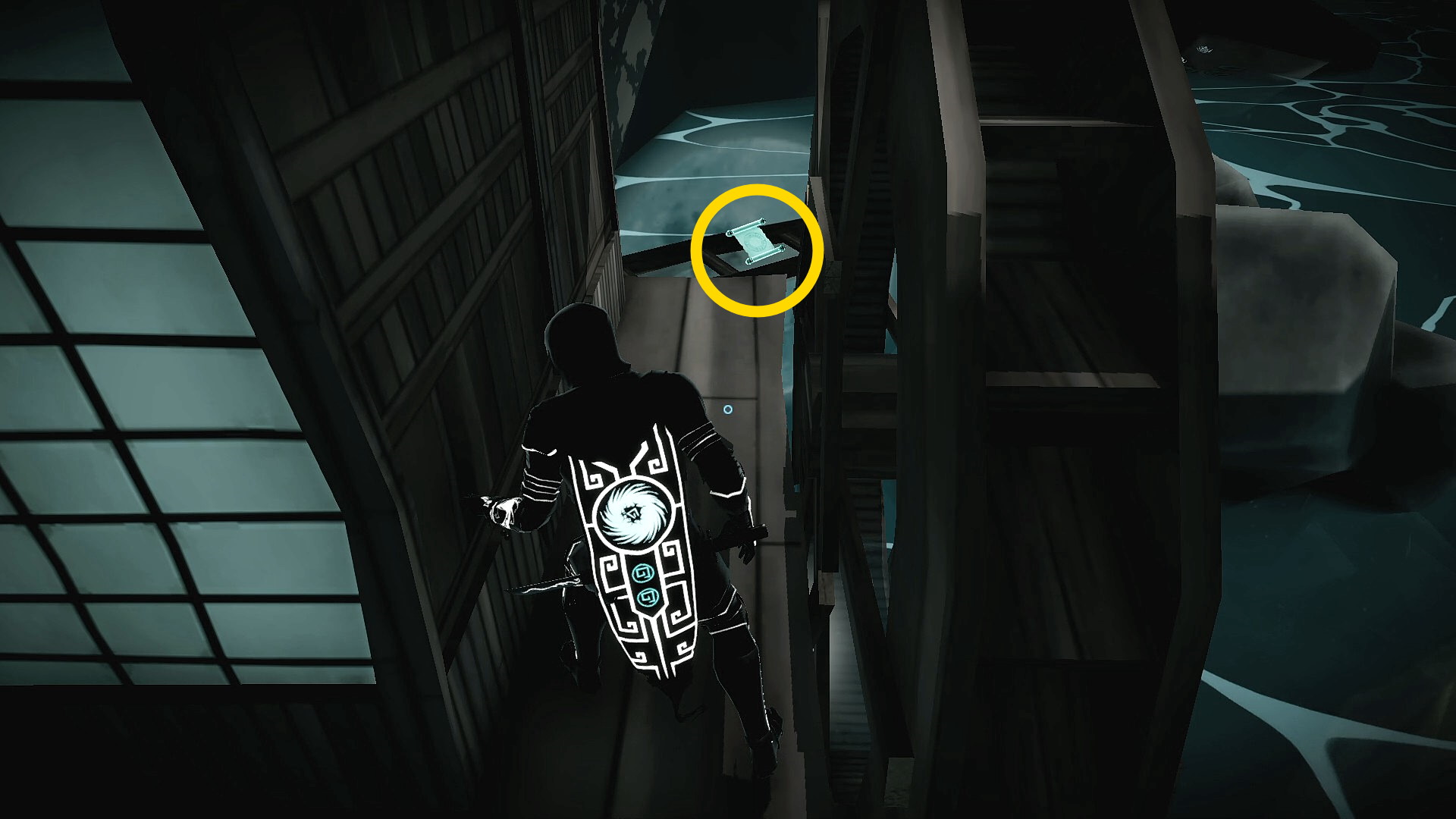 - 廊下を右に進むと水に浮かぶ木があるのでシャドーリープ