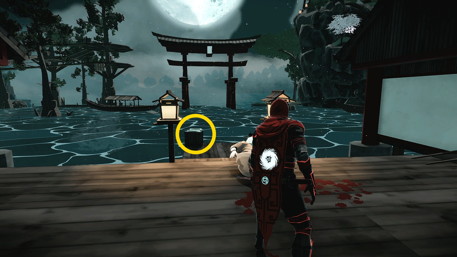 - 殲滅後は湖に浮かぶ屋形船にシャドーリープして向こう側へ
