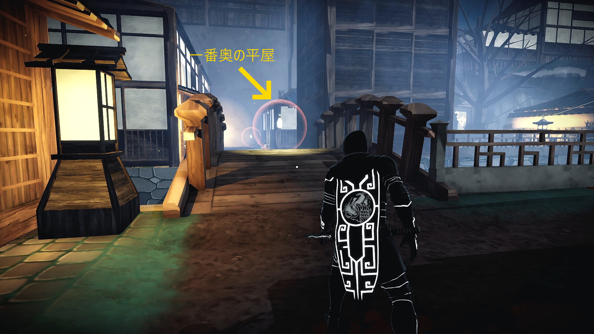 - 左側のライトオーブを破壊後、橋を渡ったエリア左前方奥の平屋の中に スクロール (6/6)