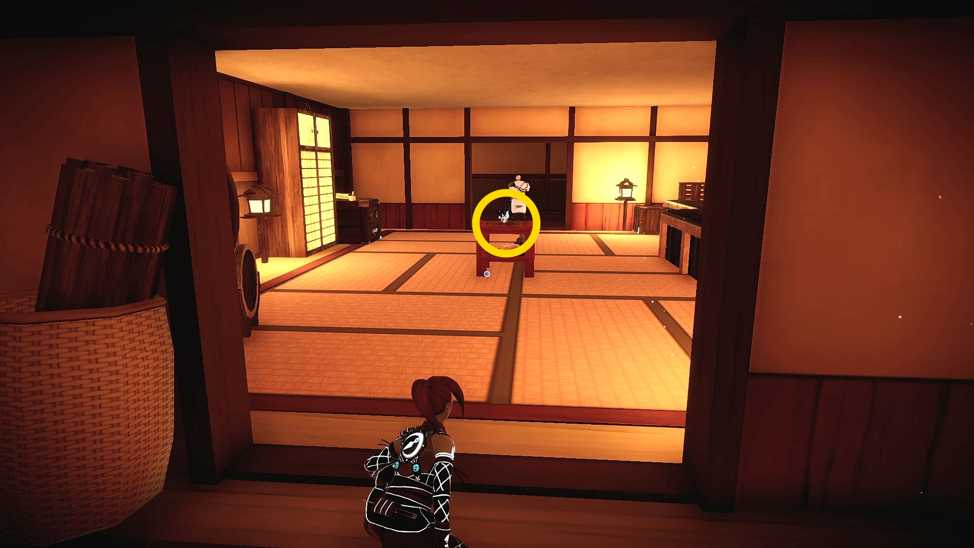 - ライトオーブを破壊後、右前方の建物に入り、中で待機していると赤い服の敵が入ってくるのでキルして櫛を回収