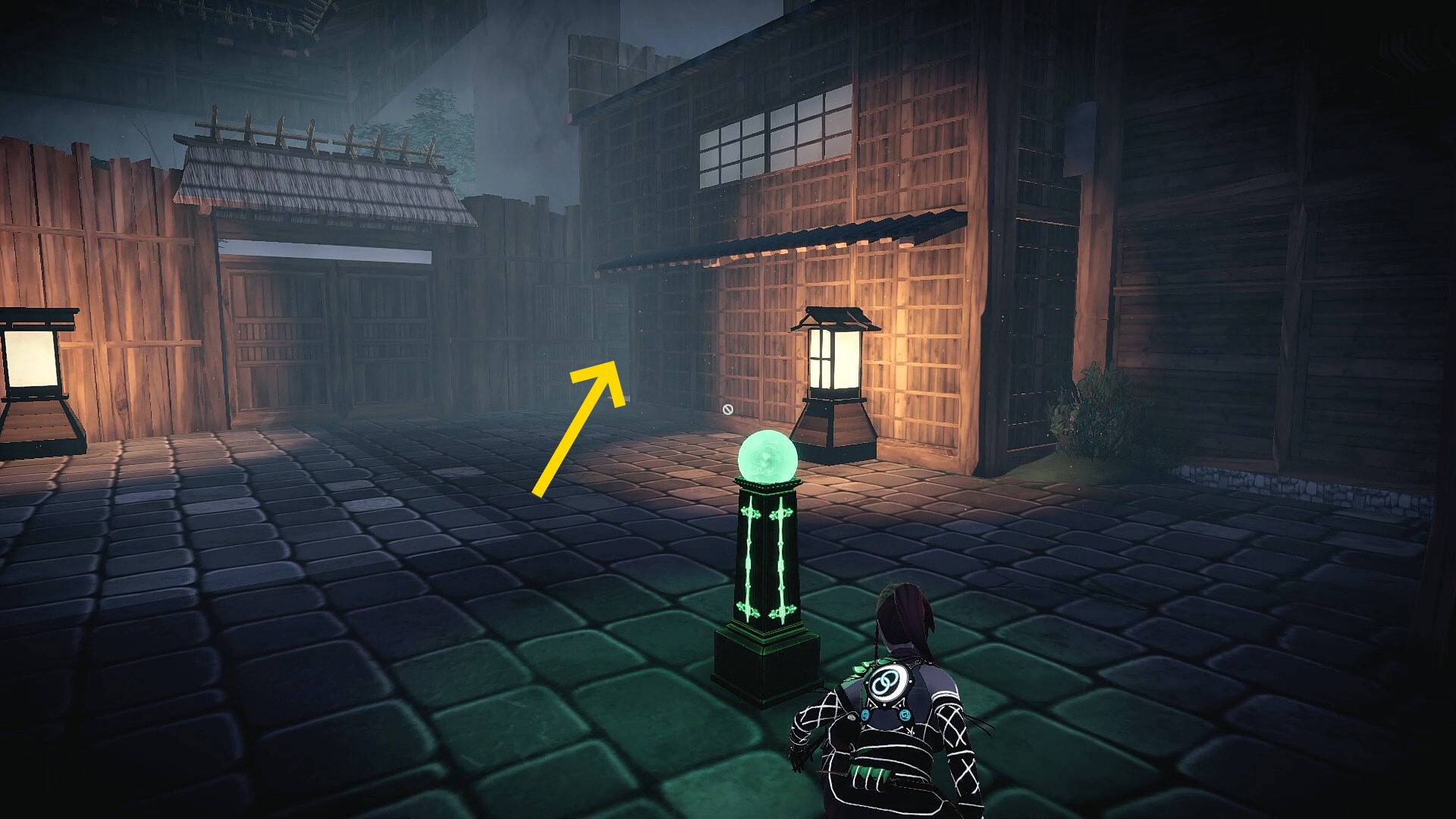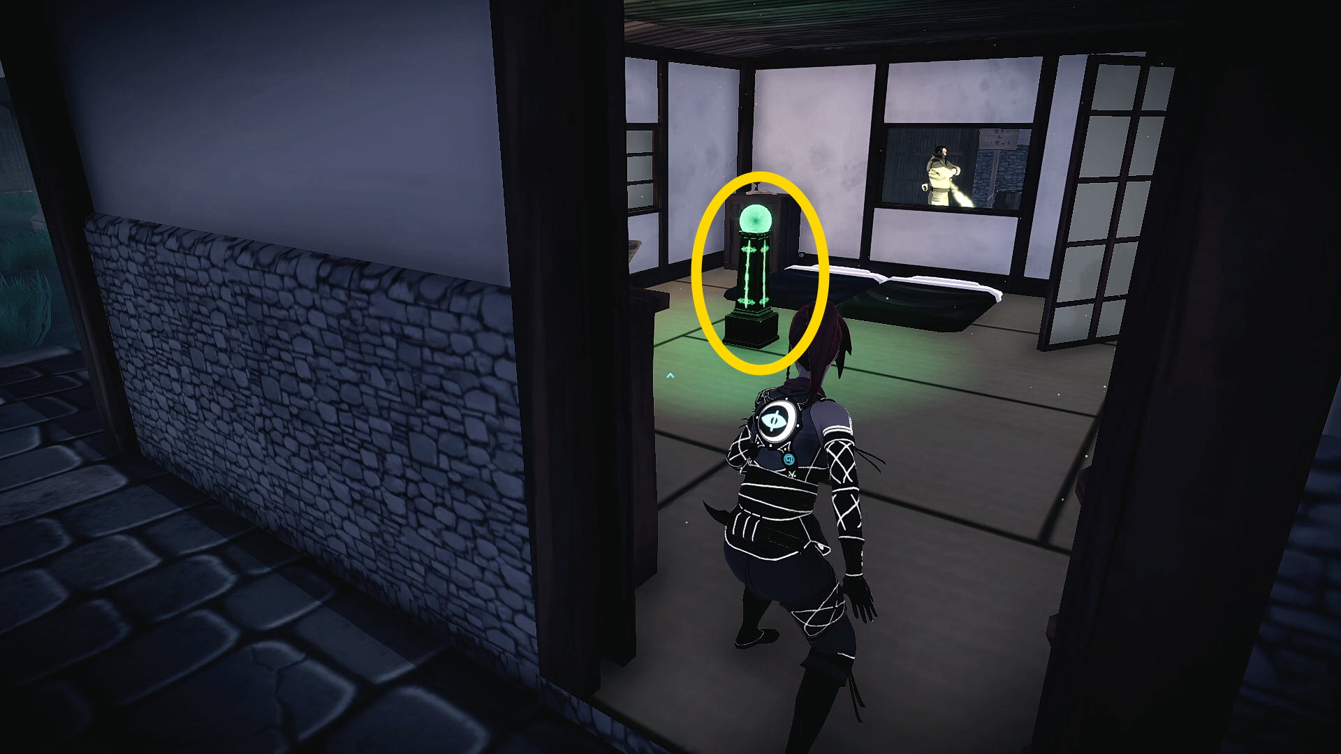 - 右前方の平屋を抜け、その右前方にある平屋の中にライトオーブがある