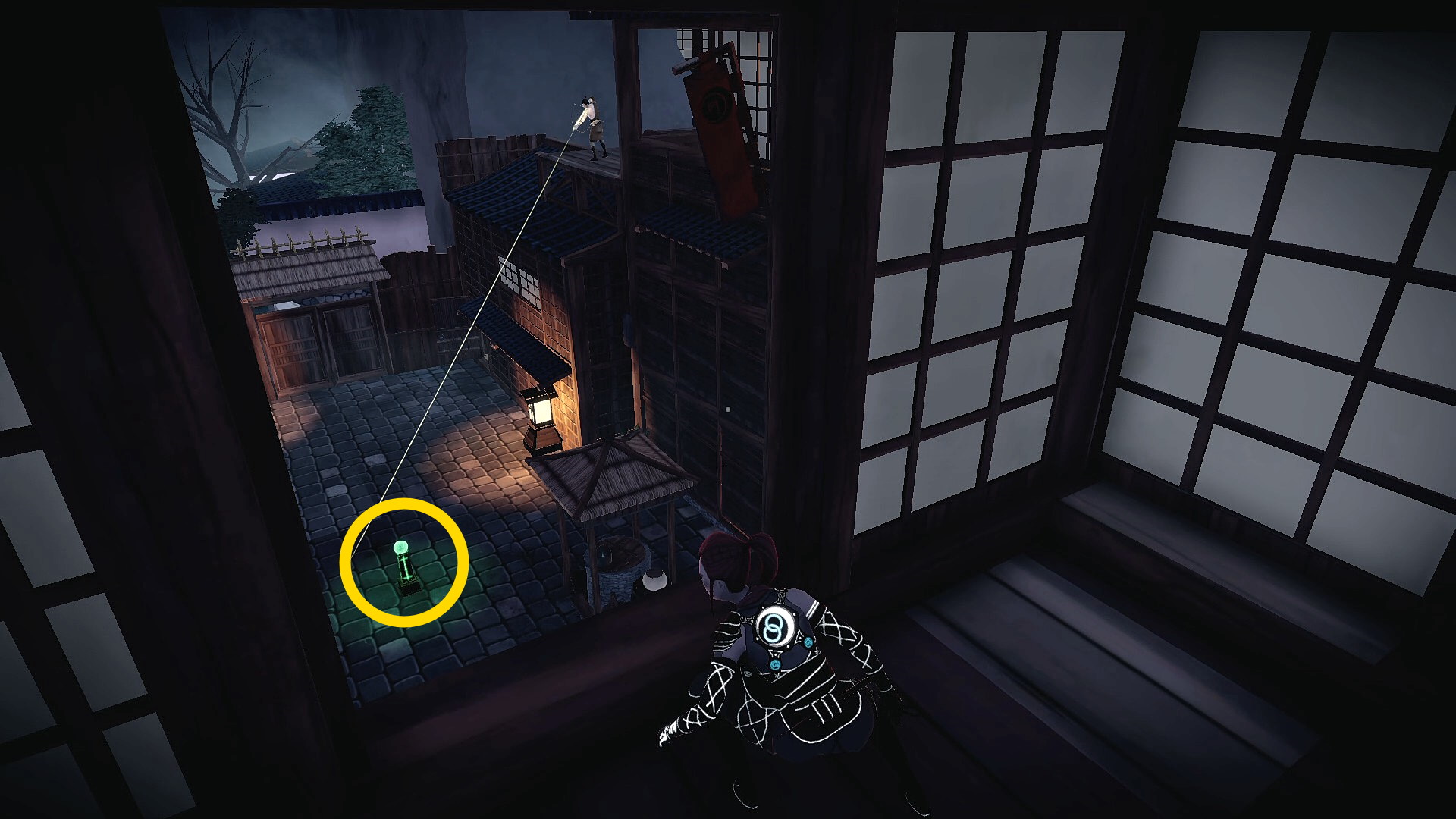 - 眼下の赤い茂みに爆薬クナイを投げてセットし、4人の兵士を誘導してから爆発させてキルすると 実績「Explosive Death」 解除
