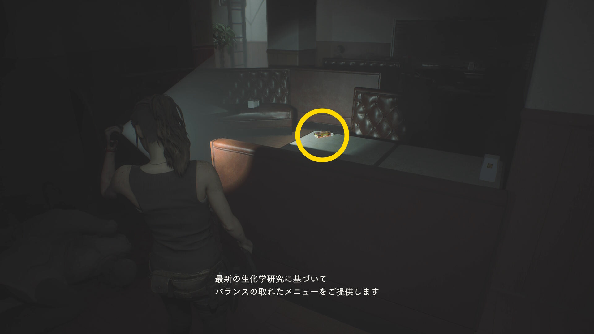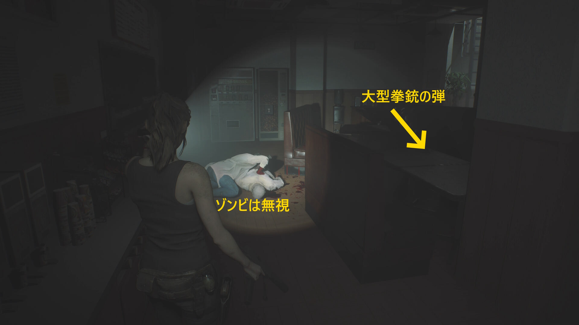 • 食事中ゾンビの右テーブルに 大型拳銃の弾