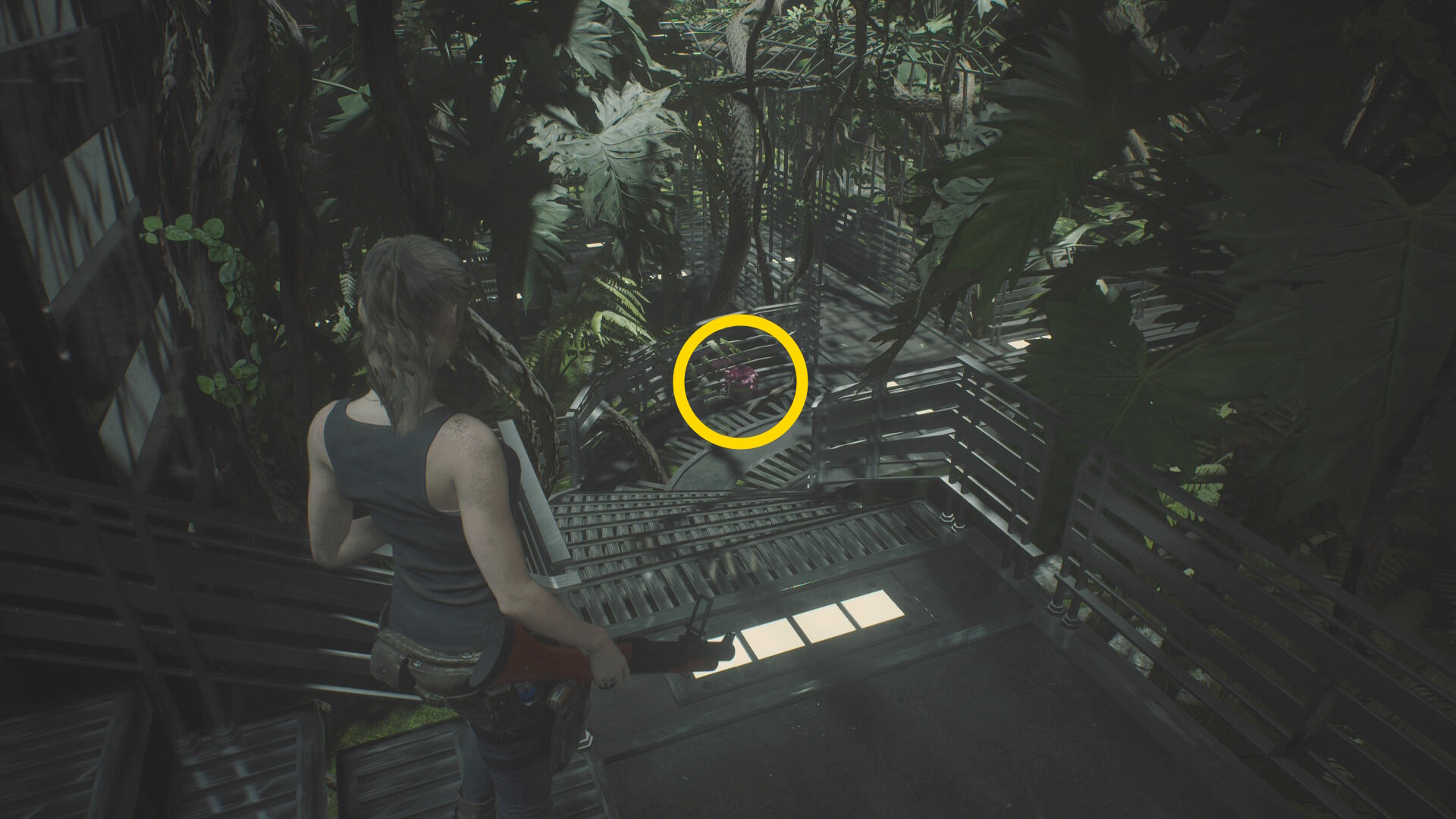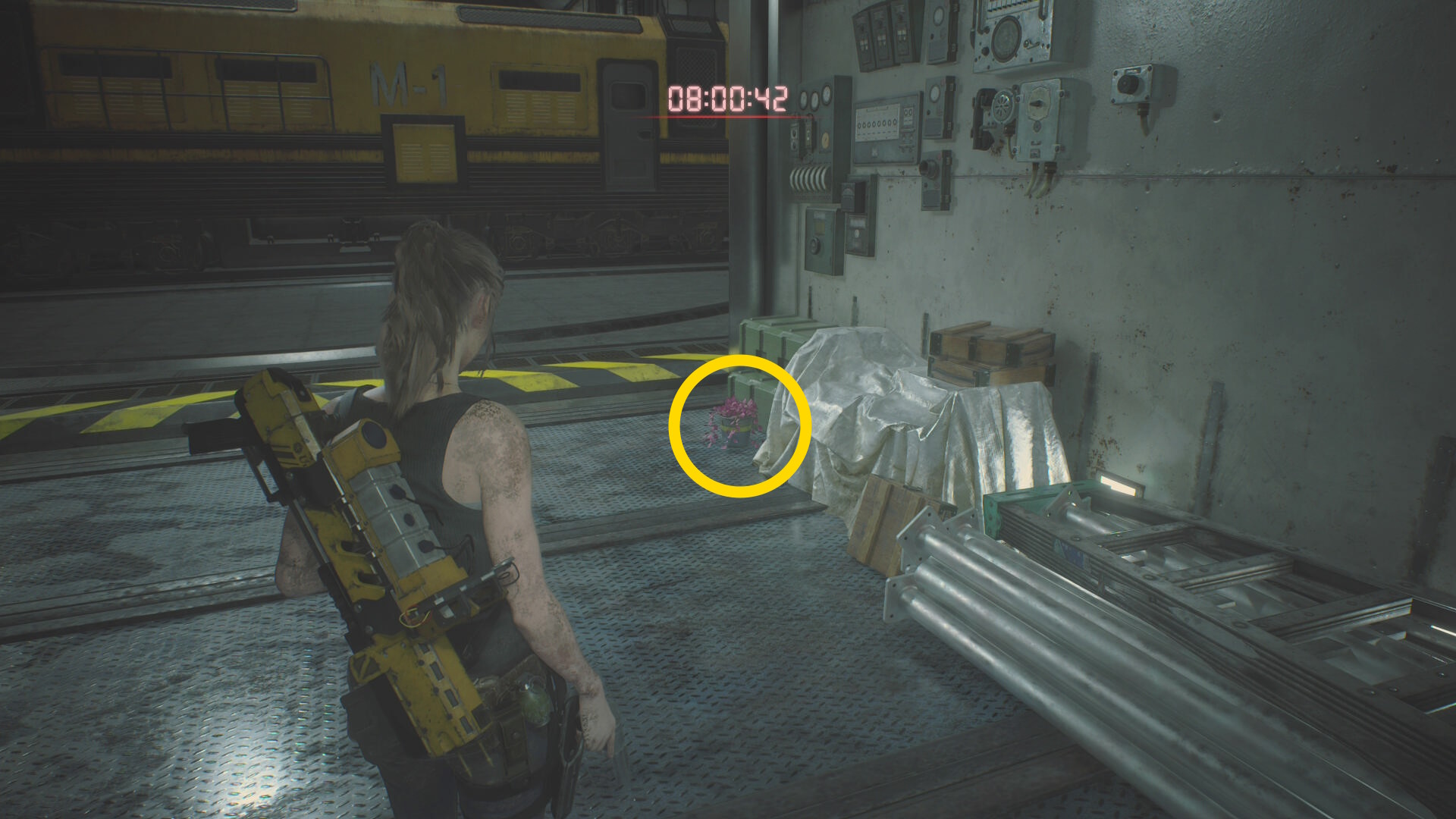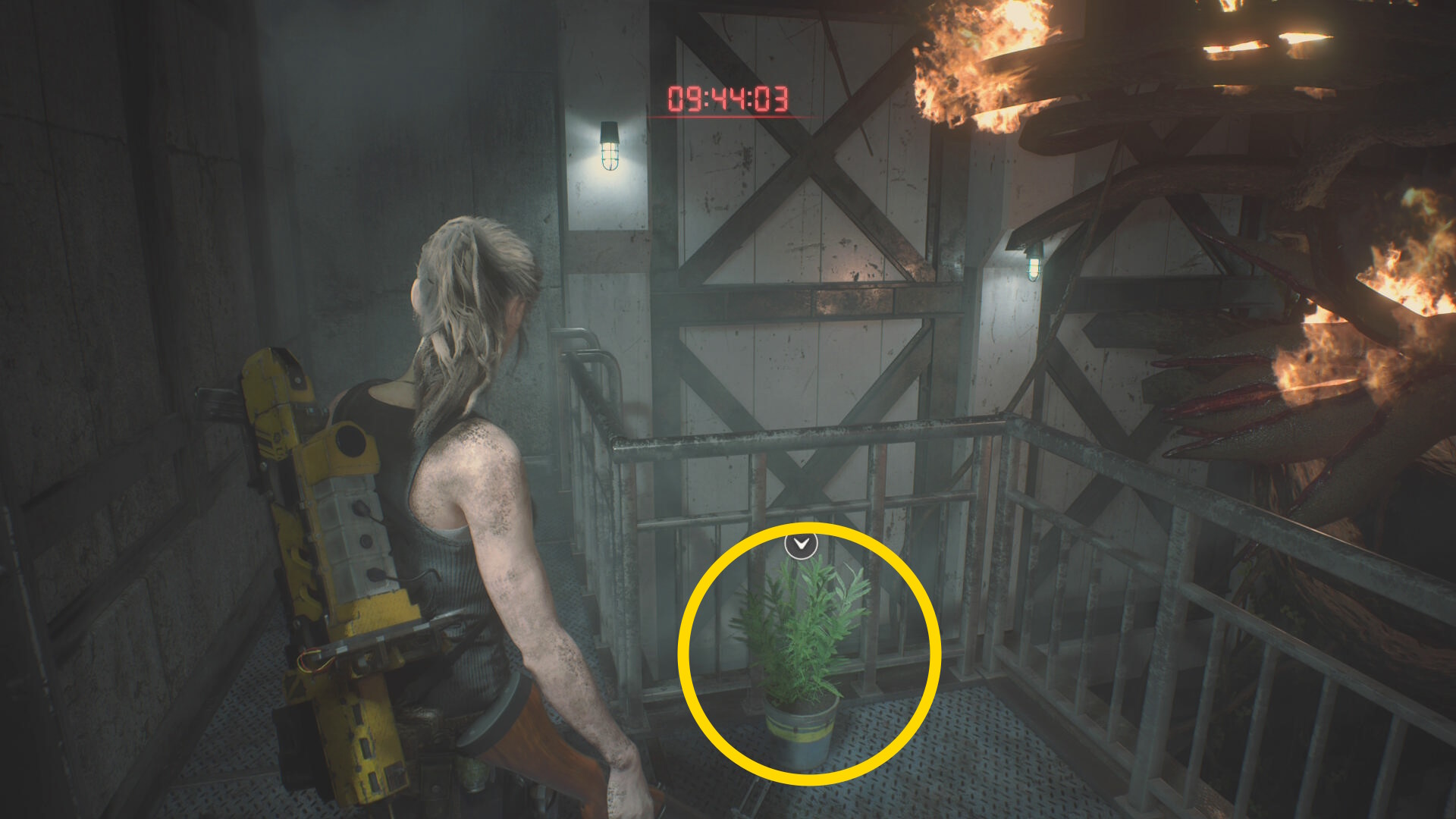 • 一番左の個室から サイドパック を回収し、2番目の個室から転げ落ちるゾンビは無視して連絡橋に戻る