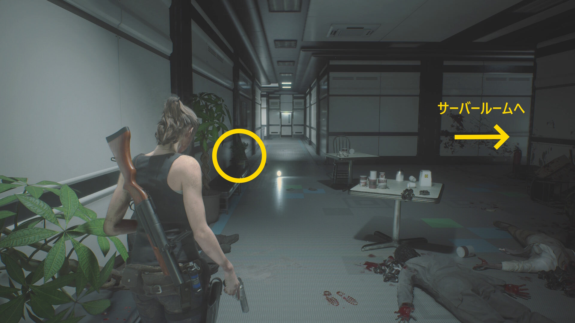 • 奥のドアを開ける際はそっと近づいて開けること(特殊部隊員ゾンビが1体いるため)