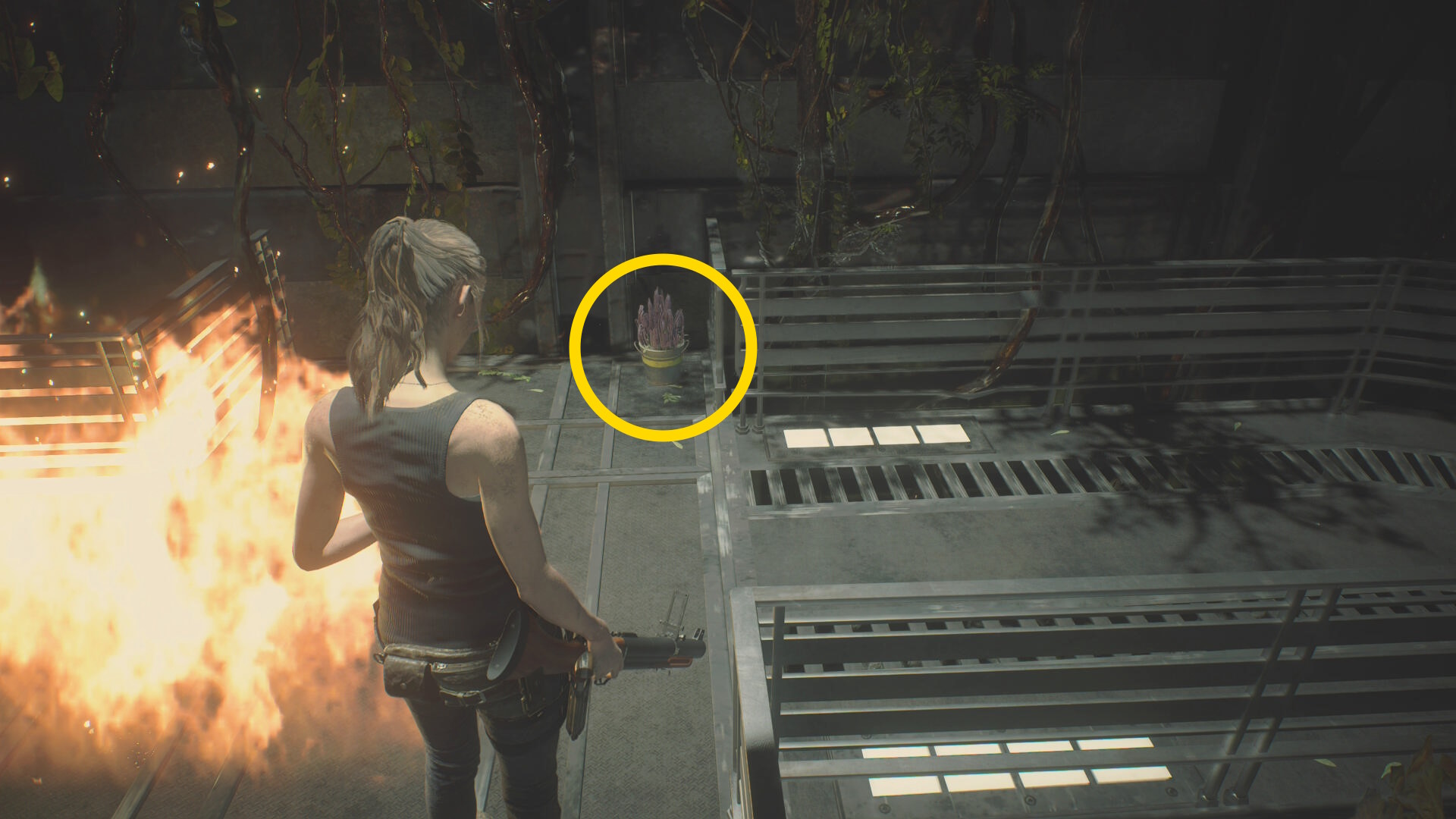 • ボタンを 3 ⇒ 2 ⇒ 1 ⇒ 3 ⇒ 2 ⇒ 1 ⇒ 3 ⇒ 2 ⇒ 1(つまり、3 ⇒ 2 ⇒ 1 を3回繰り返す)でパズルクリアとなって 散布装置用カートリッジ(薬液)を入手