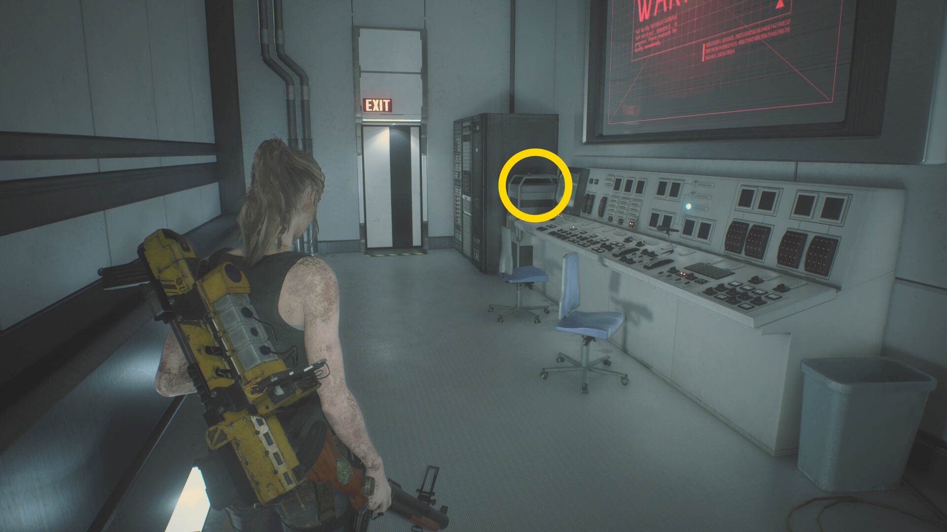 • 左の机上の 焼夷弾、ロッカーの左端から 高電圧コンデンサ(スパークショット)を回収