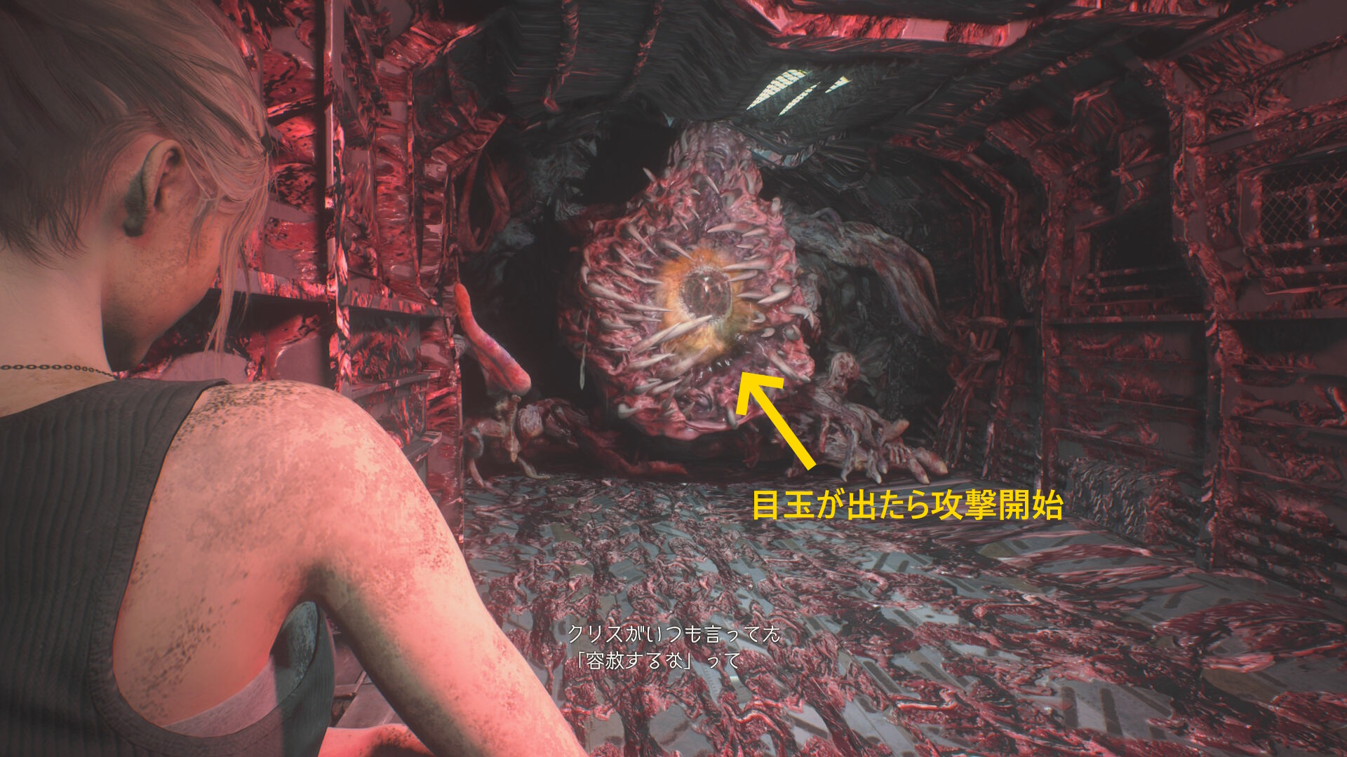 • その後、クレアを狙って列車の天井から飛び降りてくるので、列車の周囲をぐるっと移動するようにして回避