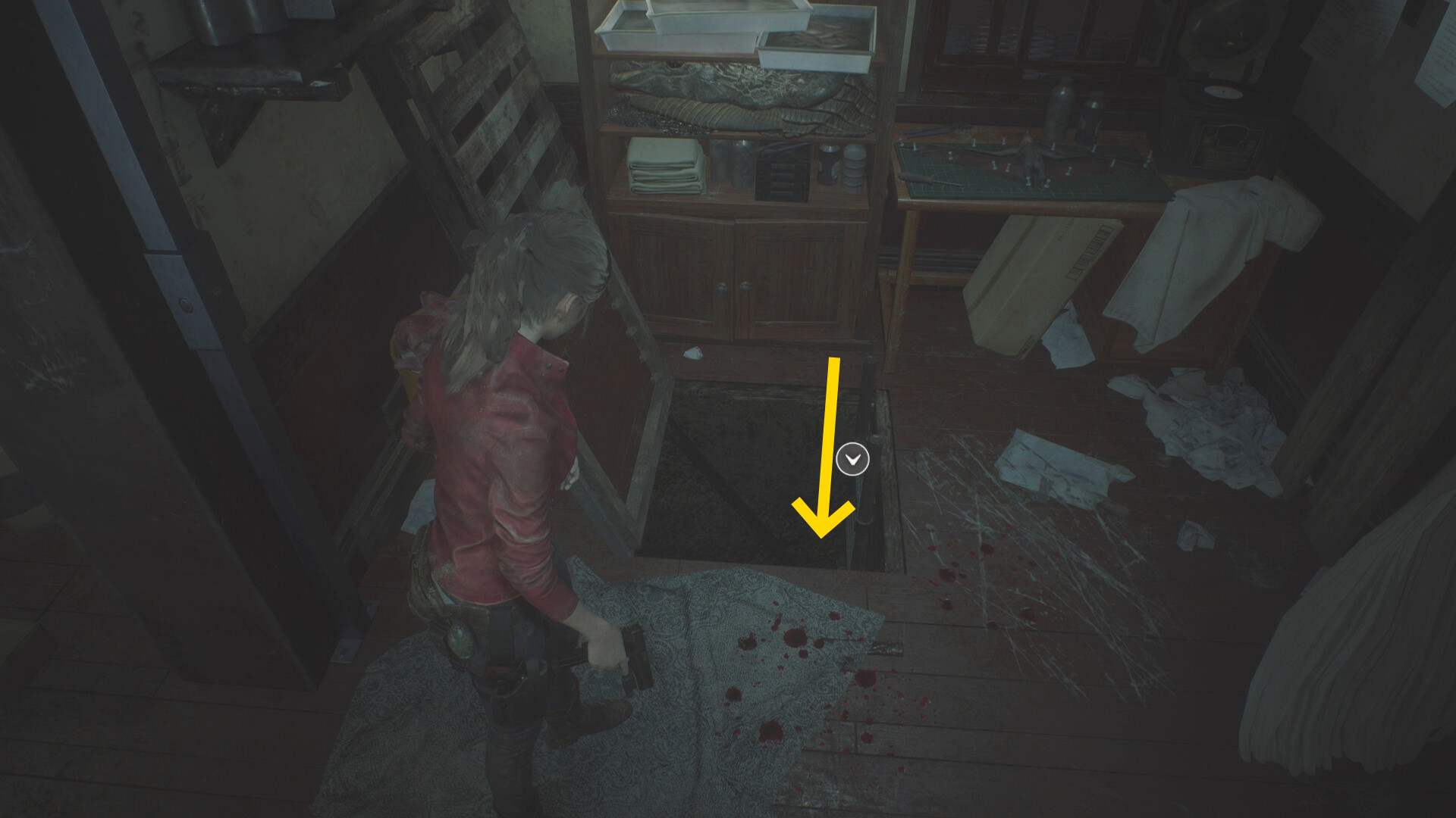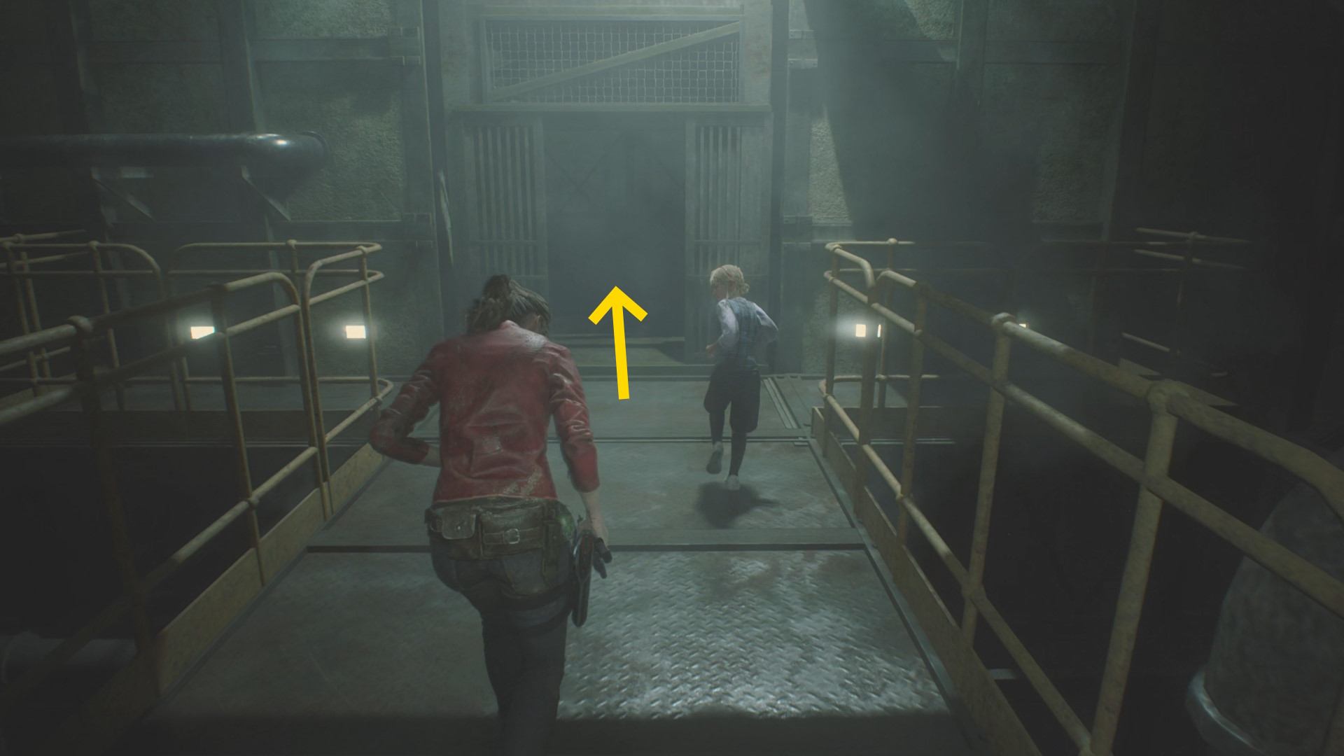 - シェリーと一緒に逃げ、突き当りのエレベーターに入ればカットシーン