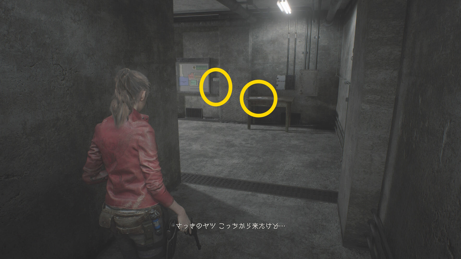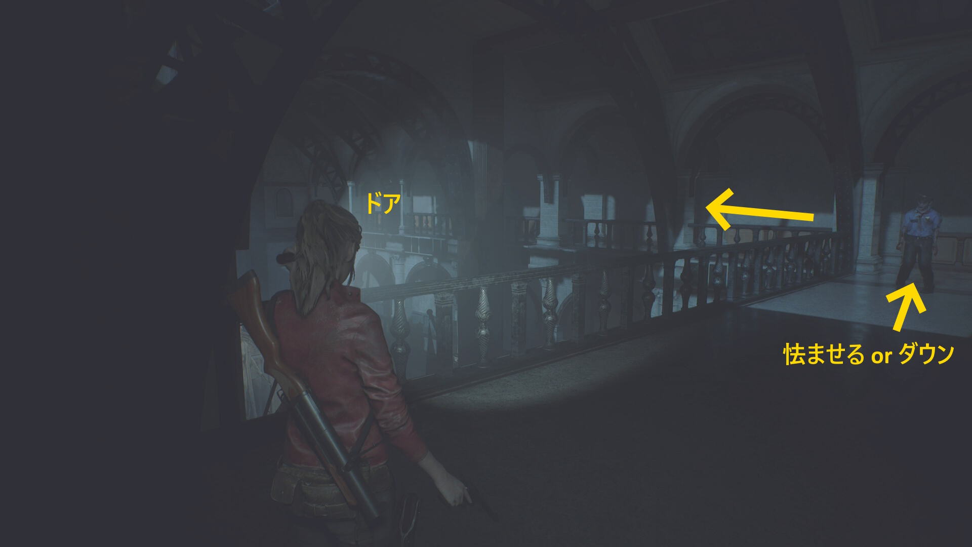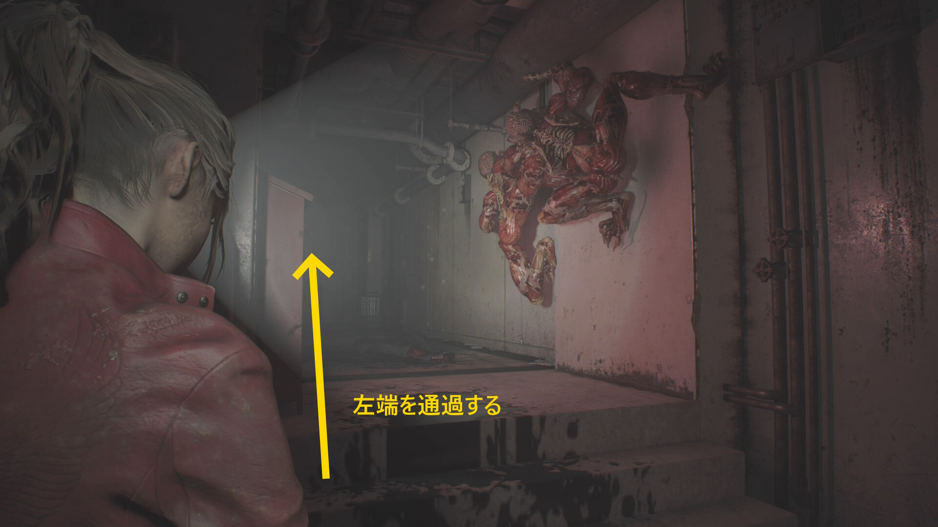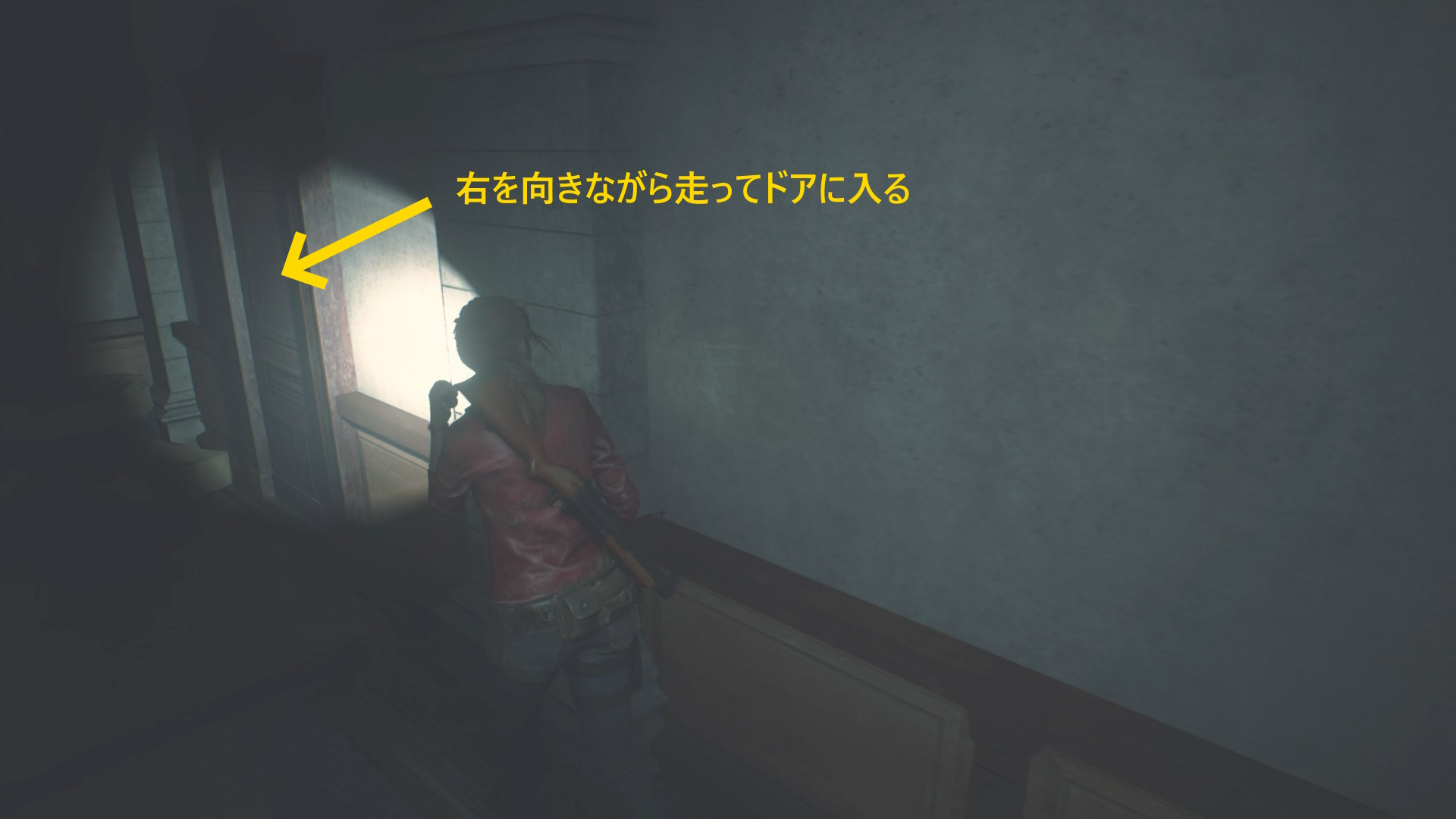 - クレアに気づくので後退して一旦廊下に出る(下画像:1枚目)
