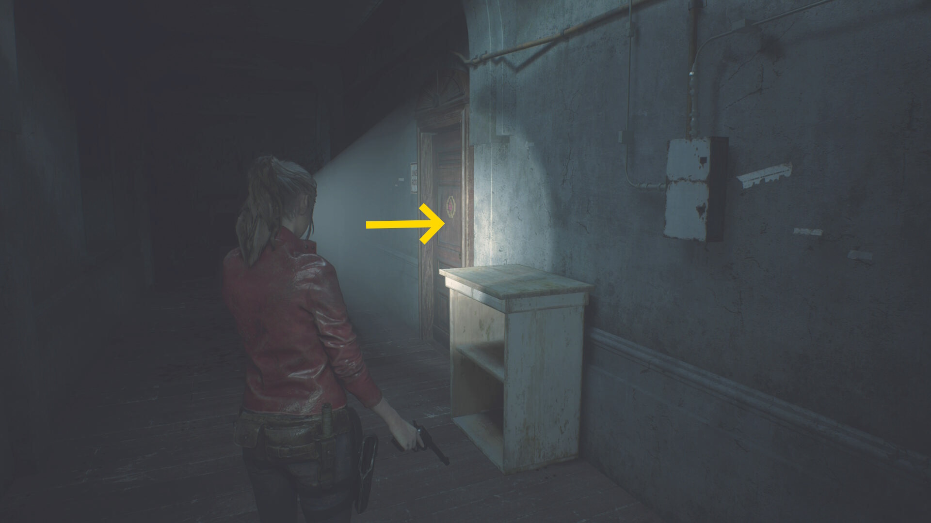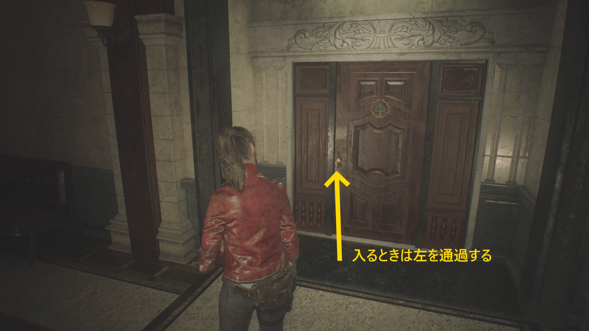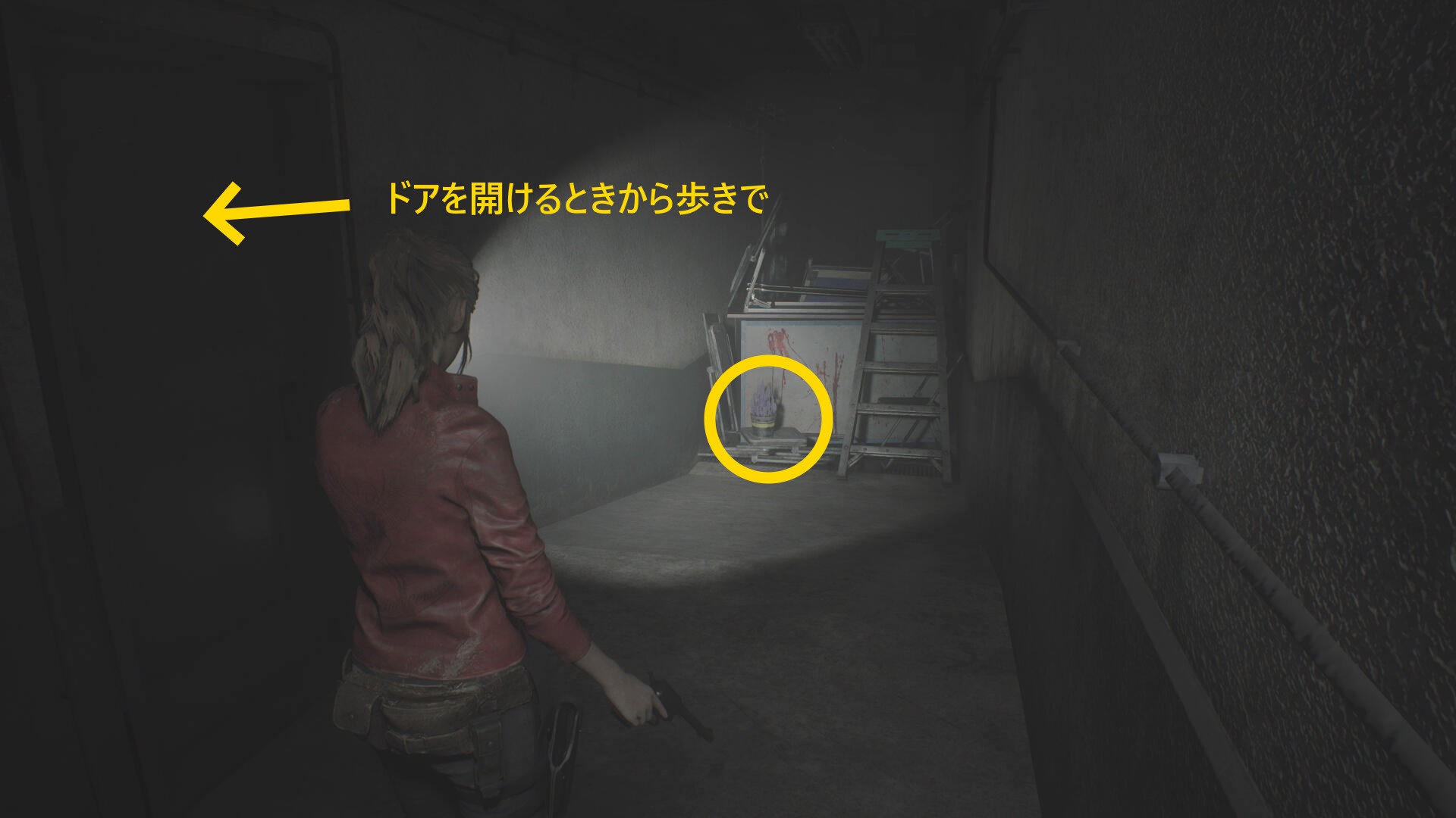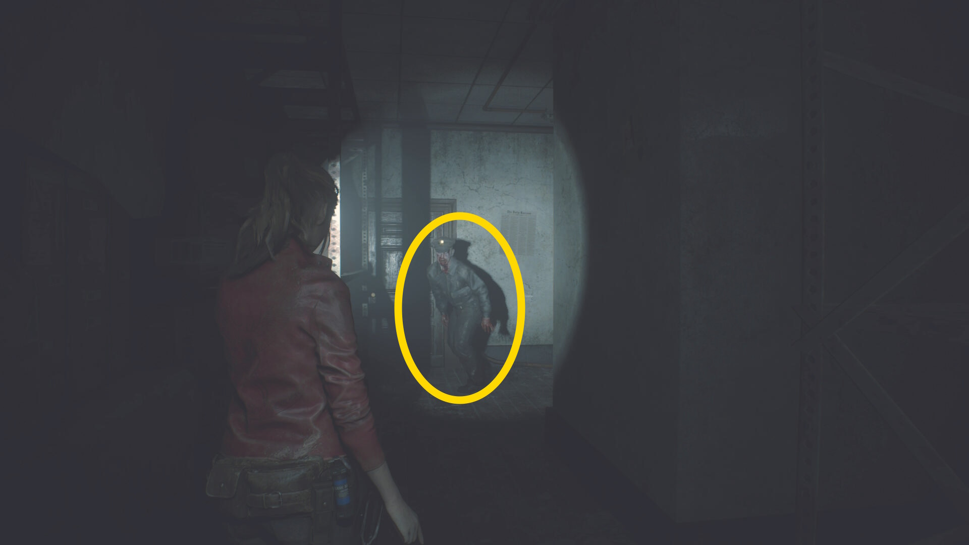 - クレアに気づくので後退して一旦廊下に出る(下画像:1枚目)