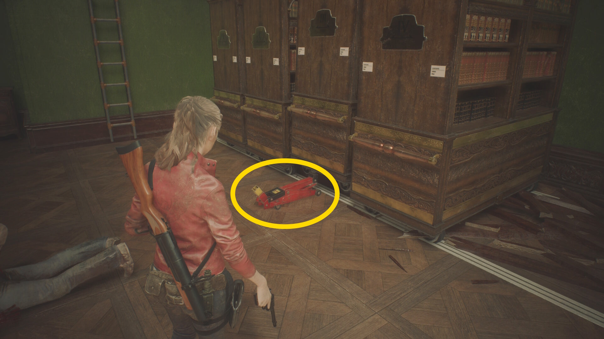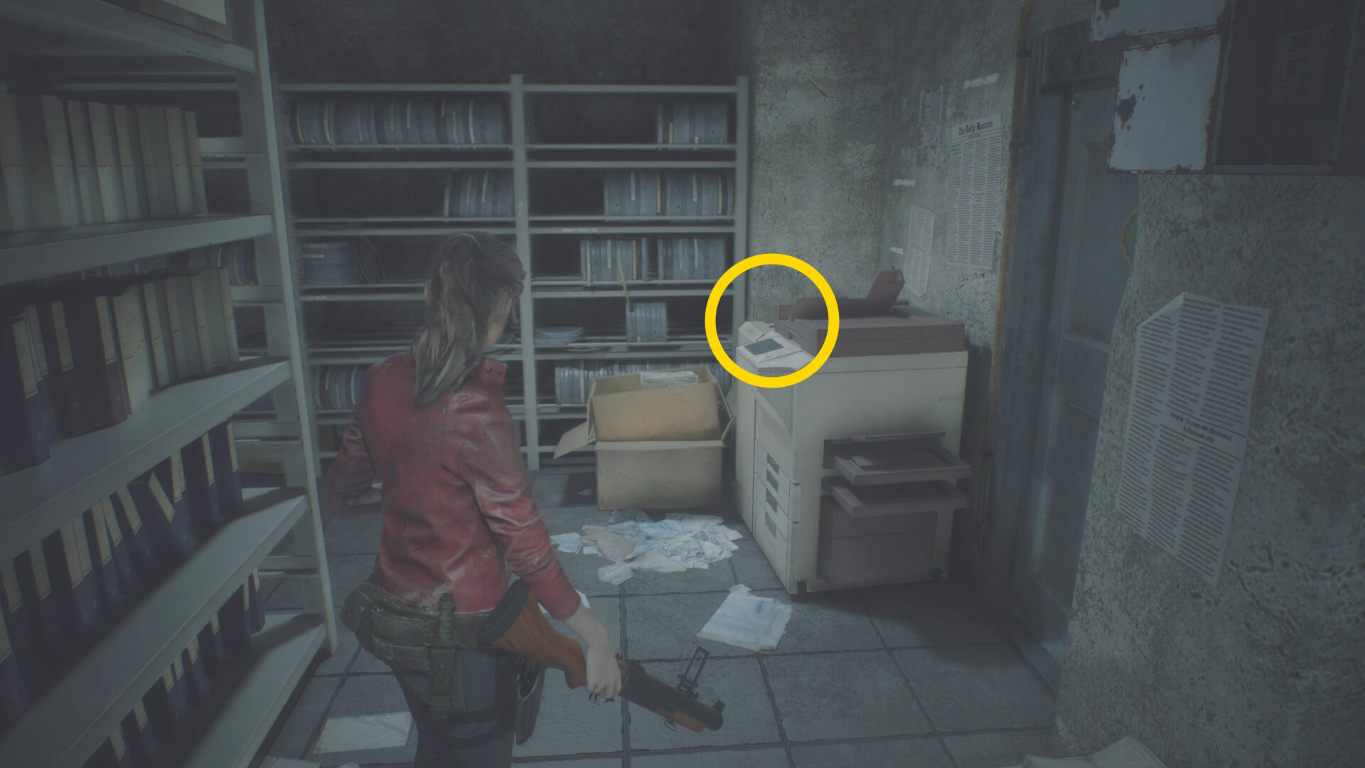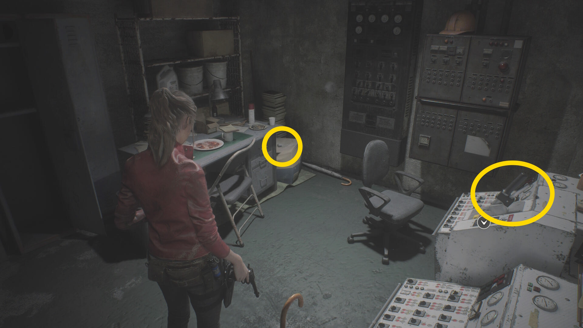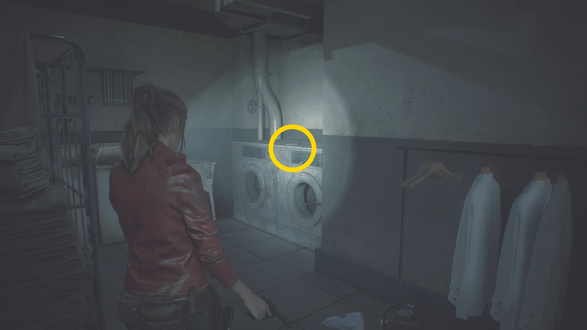 - 反対側の遺体保冷庫に向かい、左から2番目を開けるが、すべて引き出してしまうとゾンビが動き出す(床に落ちてから襲ってくる)