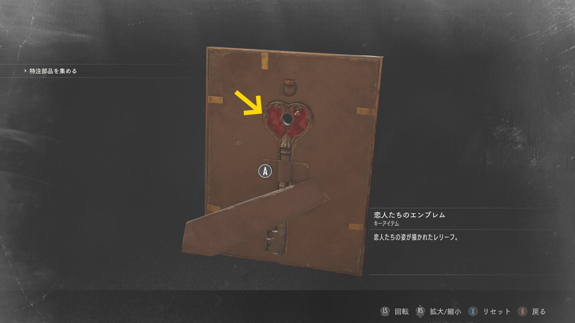 - 正面の レリーフ も回収し、それを調べて背面から ハートの鍵 を回収