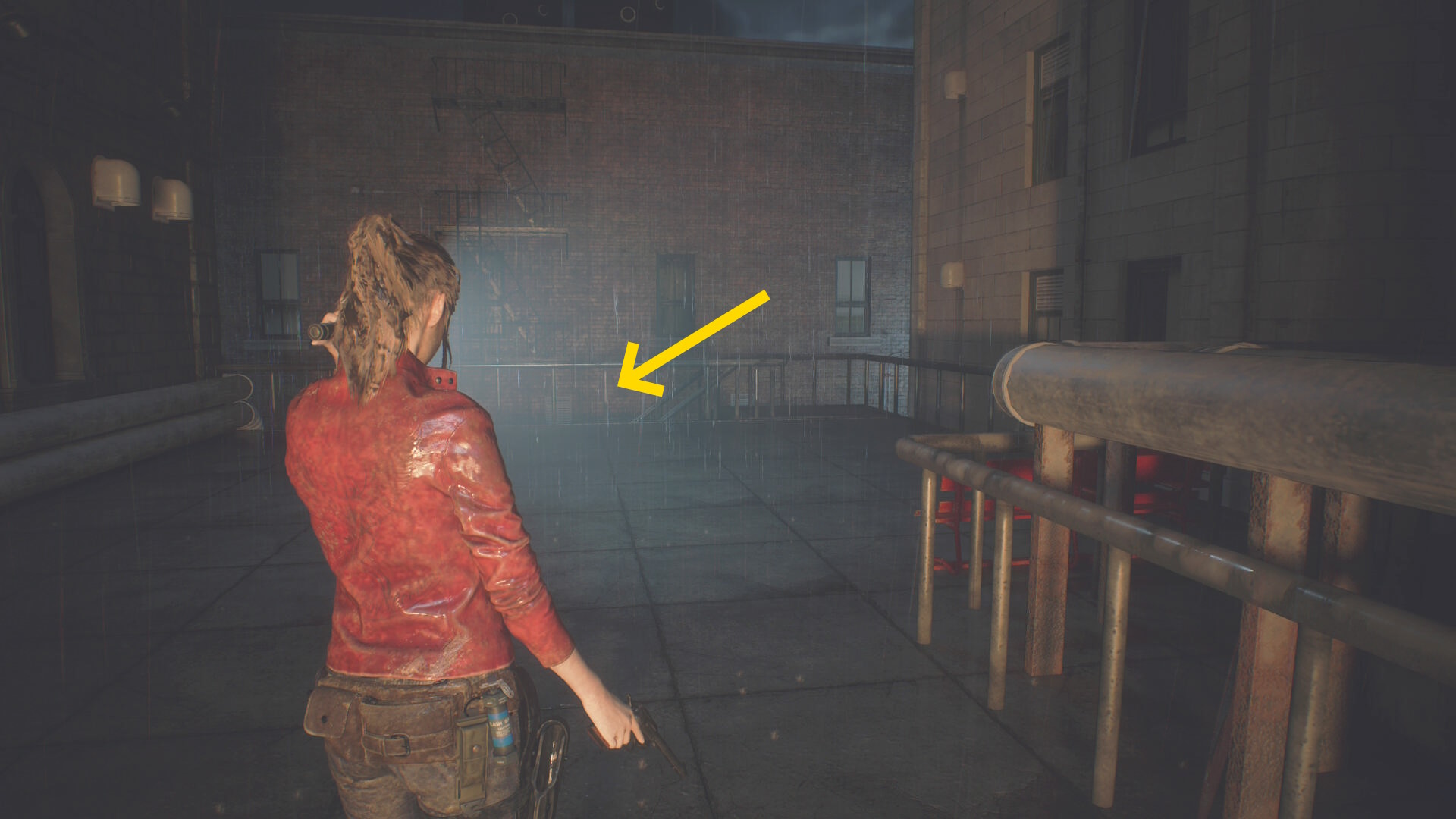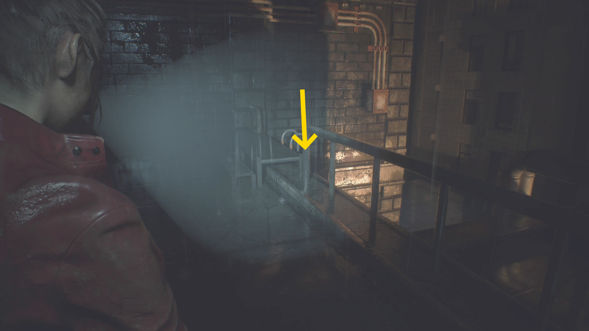 - 階段を登って道なりに移動するとタイラントの追跡はなくなる