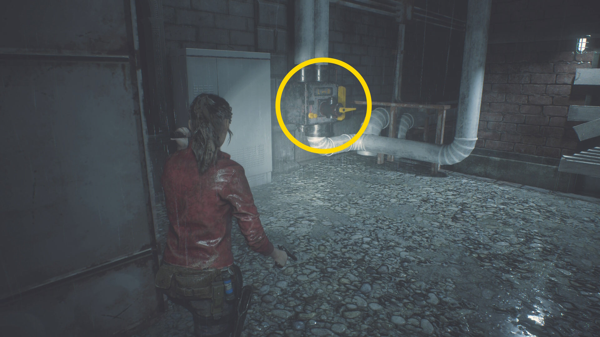- 2体のリッカーが壁に集まるので消火装置をこするように左側を移動(下画像:2枚目)