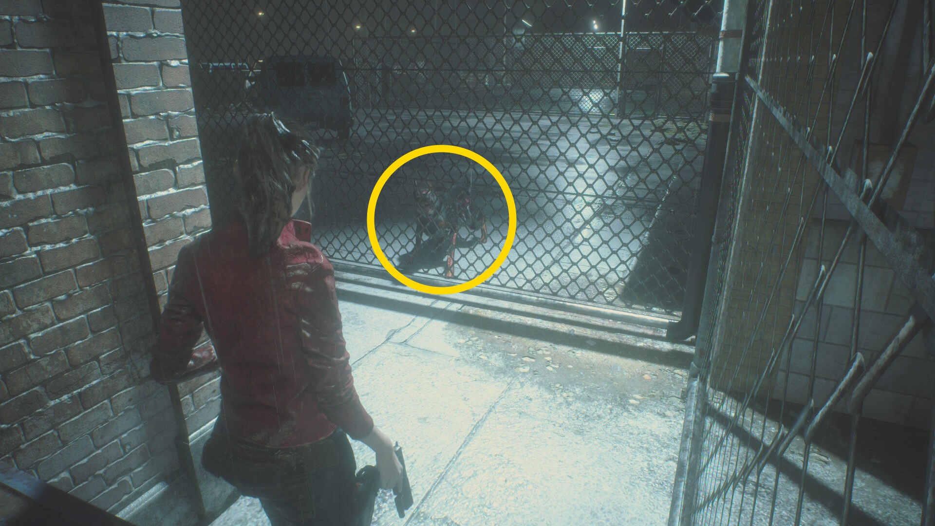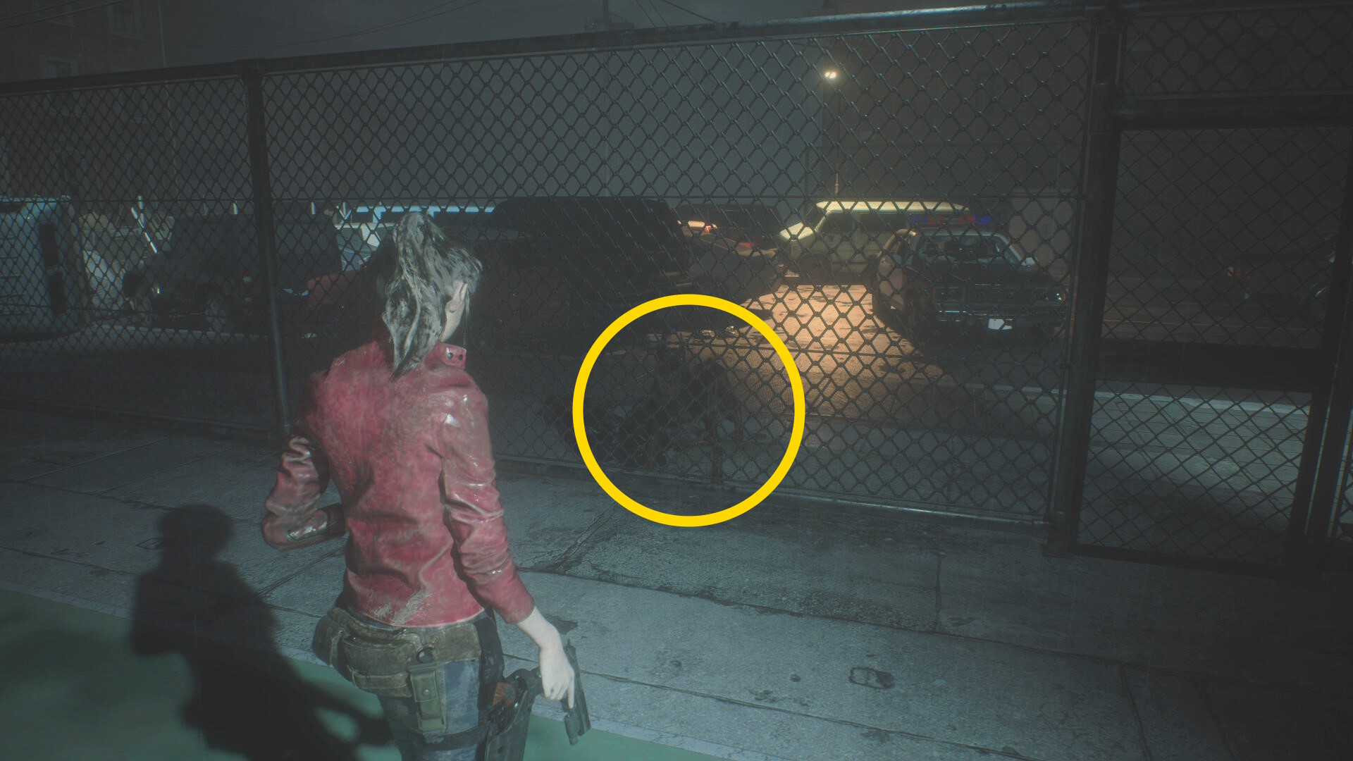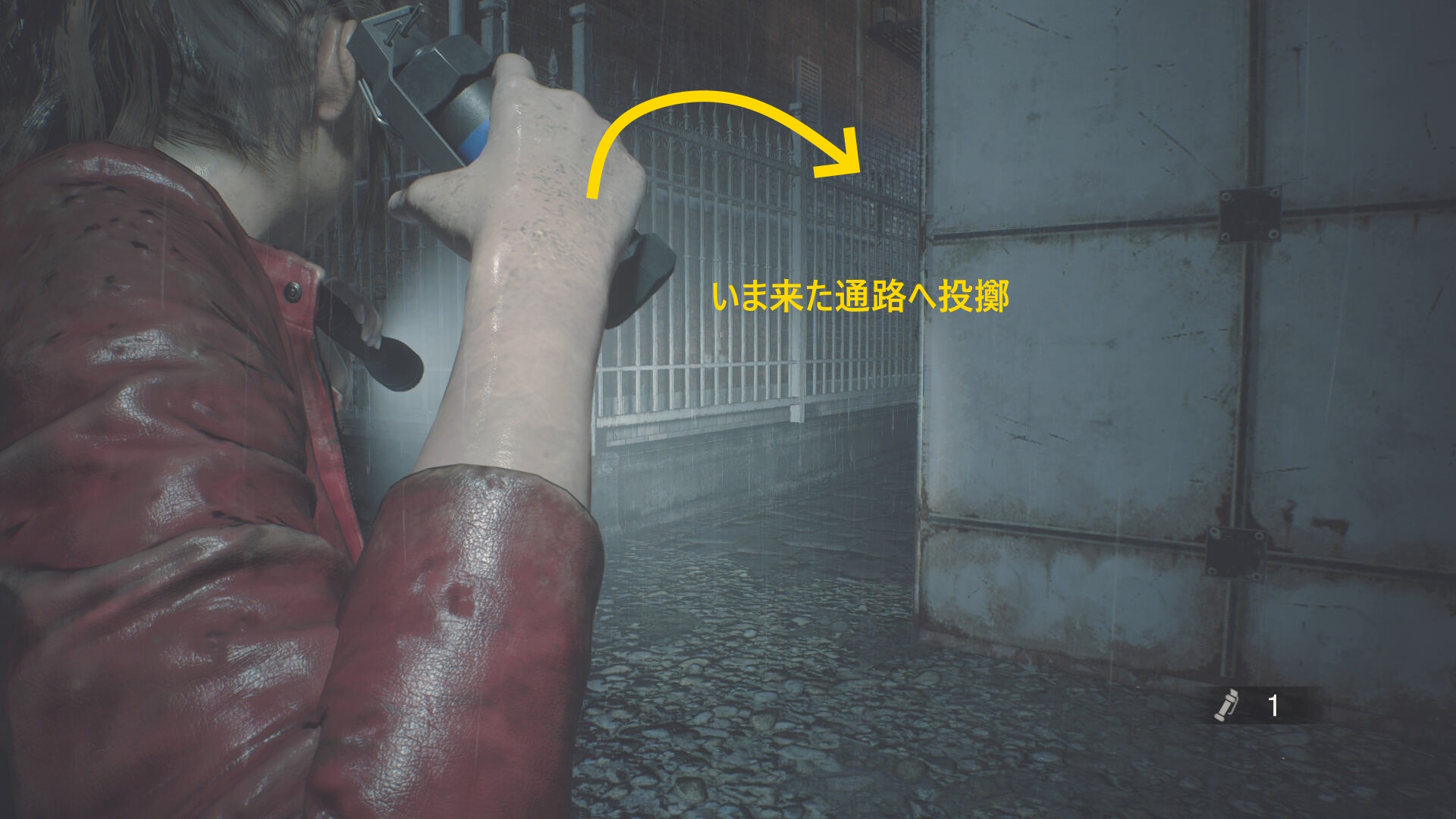 - ゴミコンテナを下りるとフェンス越しにゾンビ犬が1体出現